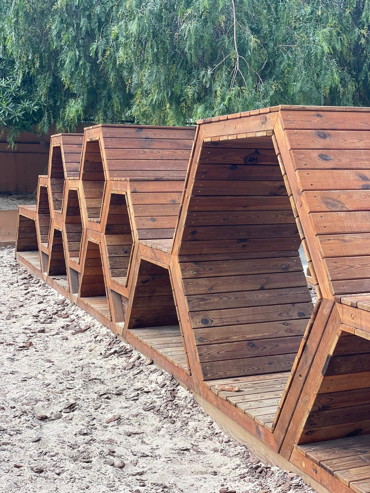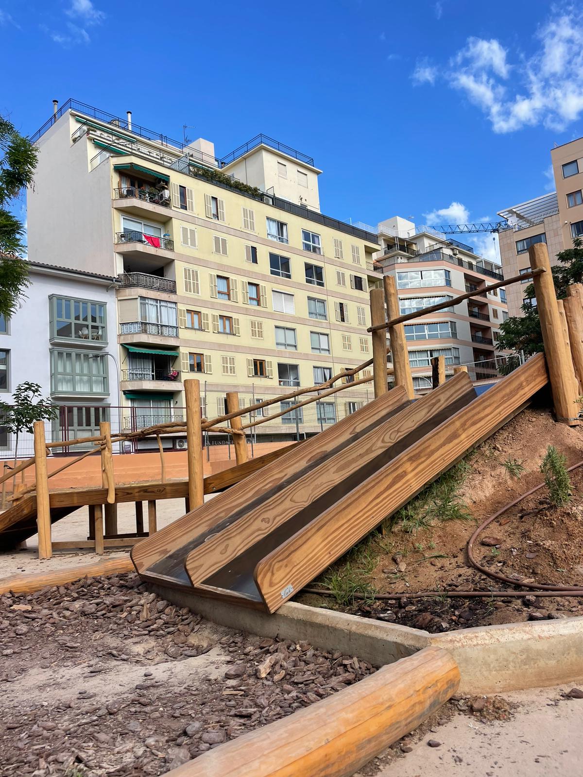 R.- A més de la qualitat estètica i sensorial que aportam als espais, treballar amb fusta i substituir el plàstic de les festes i els patis de joc té uns beneficis obvis quant a la utilització de matèria primera i despesa de recursos.