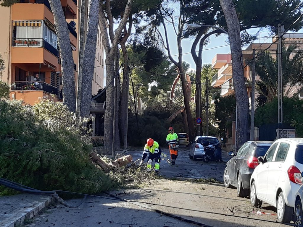 A Bunyola ha caigut un pi a l’entrada del poble des de la carretera de Sóller que ha obligat a tallar la via. A Manacor han caigut arbres i branques a l’avinguda del Torrent, a la plaça del Carme de Portocristo i a la carretera de Cales. Al CEPA Na Camel·la, el vent ha arrabassat una part de la coberta. L’Ajuntament ha sol·licitat la col·laboració dels Bombers de Mallorca.