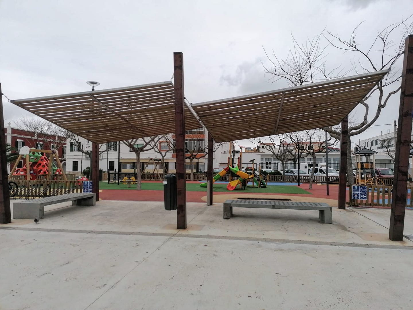 Es Castell ha finalitzat la instal·lació de la nova pèrgola de fusta del parc infantil…