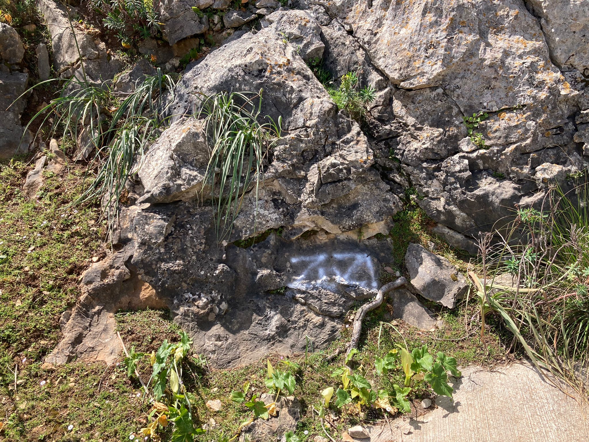 Un conjunt de quatre pintades vandàliques han estat realitzades sobre les roques properes a Biniamar…