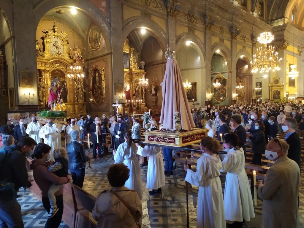 Un dels esdeveniments importants d’aquesta jornada, després de la vigília que va tenir lloc la diada anterior, és l’Ofici religiós, que va precedit de la processó de l’Encontre, en la qual la imatge del Crist Ressuscitat es troba amb la Mare de Déu de front i tots dos expressen la seva alegria.