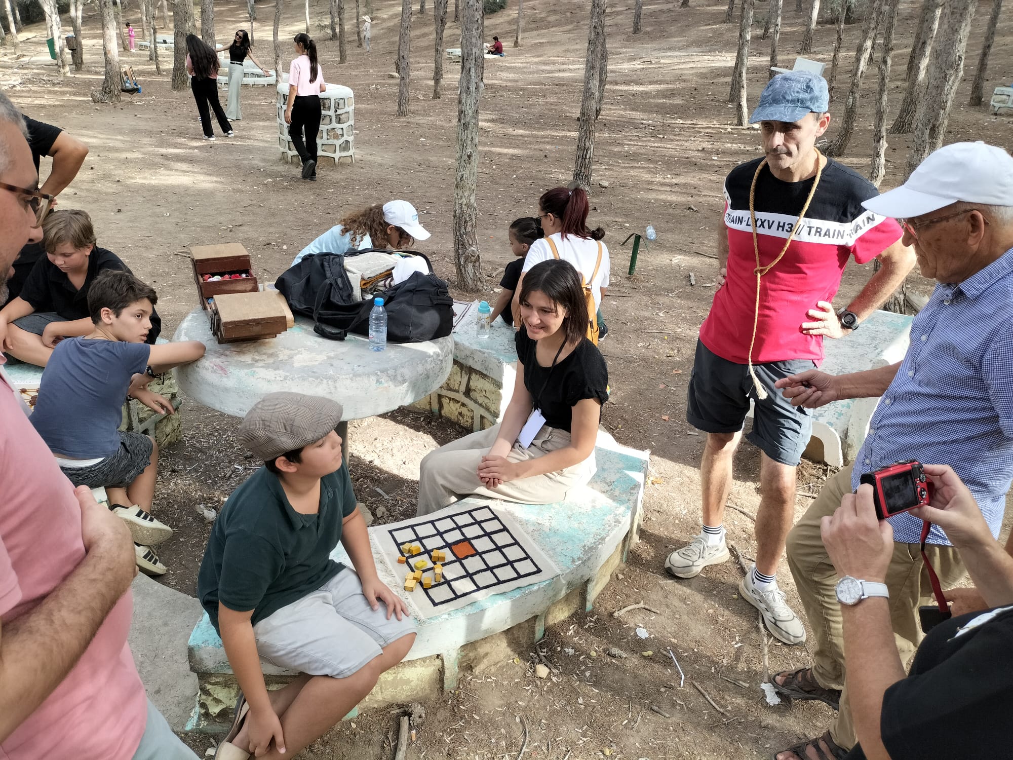 Ahir mateix, baix de la presidència del senyor Wajdi Ghozzi, de l’ambaixada de Tunísia, actual president de l’associació de salvaguarda dels jocs tradicionals del país (un autèntic i positiu somniador), varen fer una demostració al Parc de l’Abella, amb la presència de l’associació de protecció dels jocs tradicionals, que després de l’oportuna tirada i taller de tir de معڨال (Moaguel, o tir de passetja), gaudiren d’ensenyar-los els preuats jocs seus.
