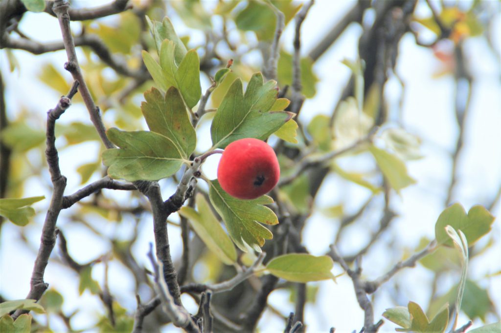 I com a postres, un bon platet d’atzeroles, petites, d’uns dos centímetres, riques en flavonoides i vitamines A i C, amb polpa de gust dolç i acídul, collides del nostre atzeroler, encara petit arbre caducifoli, que pot arribar a tenir de 5 a 10 metres d’alçada, molt lent en créixer, però que pot arribar a viure 600 anys o més.