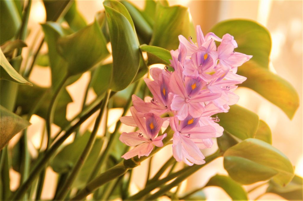Sempre, a la nostra terrassa, hi ha un ribell gros, d’aquests que empraven quan mataven els porcs, els mesos d’hivern, ple d’aigua, amb els coneguts i colorits jacints d’aigua (Eichhornia Crassipes), espècie flotant perenne d’arrels submergides, que aparentment no tenen tija, proveïts d’un rizoma, molt particular, emergent, del que s’obre una rosassa de fulles amples (de 10 a 20 centímetres), gruixudes i lluents i pot arribar a emergir prop d’un metre per fora de la superfície de l’aigua, amb una superfície esponjosa notablement inflada, en forma de globus, que forma una bufeta plena d’aire, gràcies a la qual les plantes poden mantenir-se sobre la superfície de l’aigua.