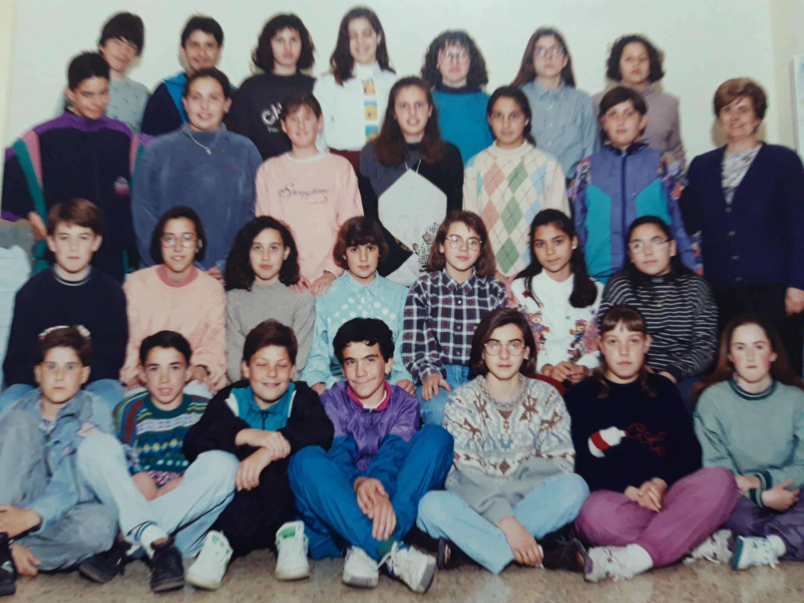 Grup d’alumnes, nins i nines amb la mestra Margalida Bennàssar (Arxiu col·legi)
