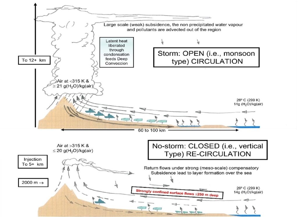 A les dècades de 1960 i 1970, l’aire humit procedent del mar arribava a la costa amb uns 14 grams de vapor per quilo d’aire. En passar per humedals, camps de cultiu i boscos, aquest aire es carregava de més vapor fins a arribar als 21 grams, ascendia per les muntanyes i descarregava la pluja. Aquest era el cicle curt en funcionament.