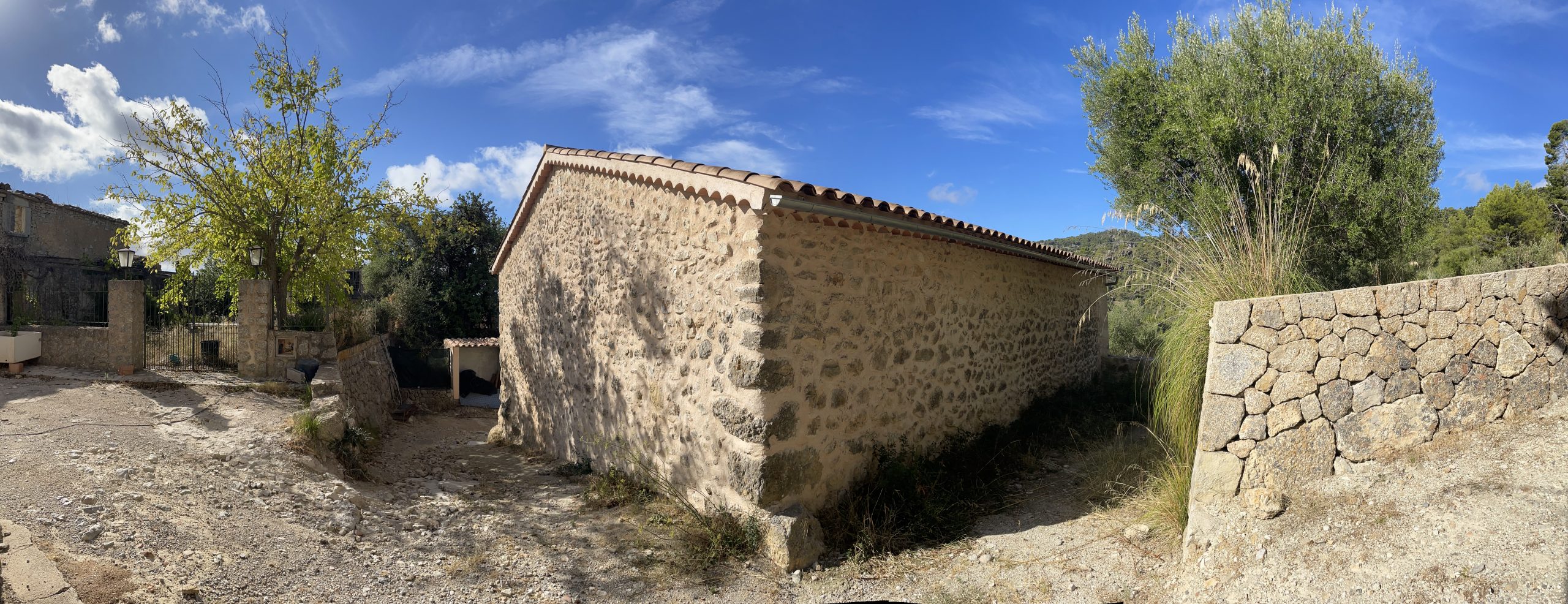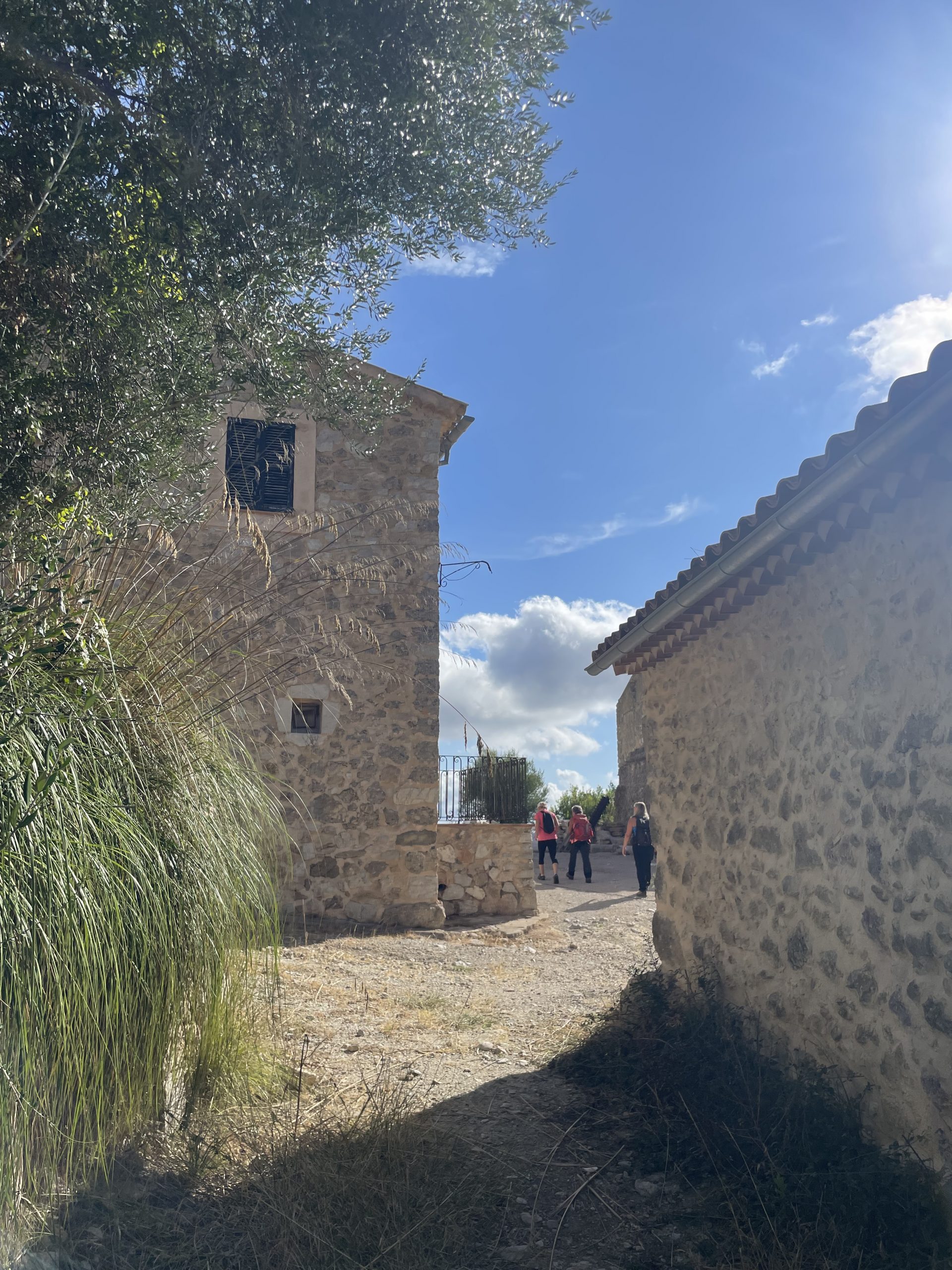 Després d’una darrera envestida del pendent, el camí desemboca a la primera casa de Biniarroi i s’obre a una petita plaça amb vistes àmplies sobre tota la vall, on l’aire sembla més clar i el silenci més solemne.
