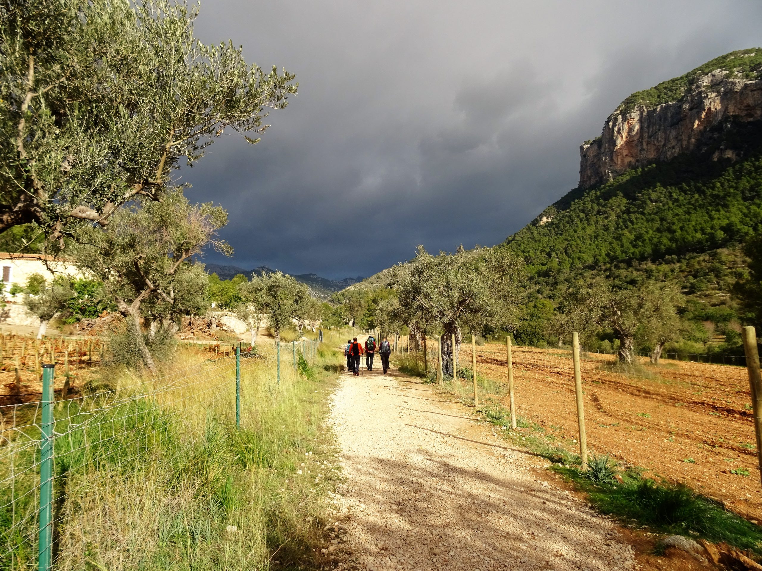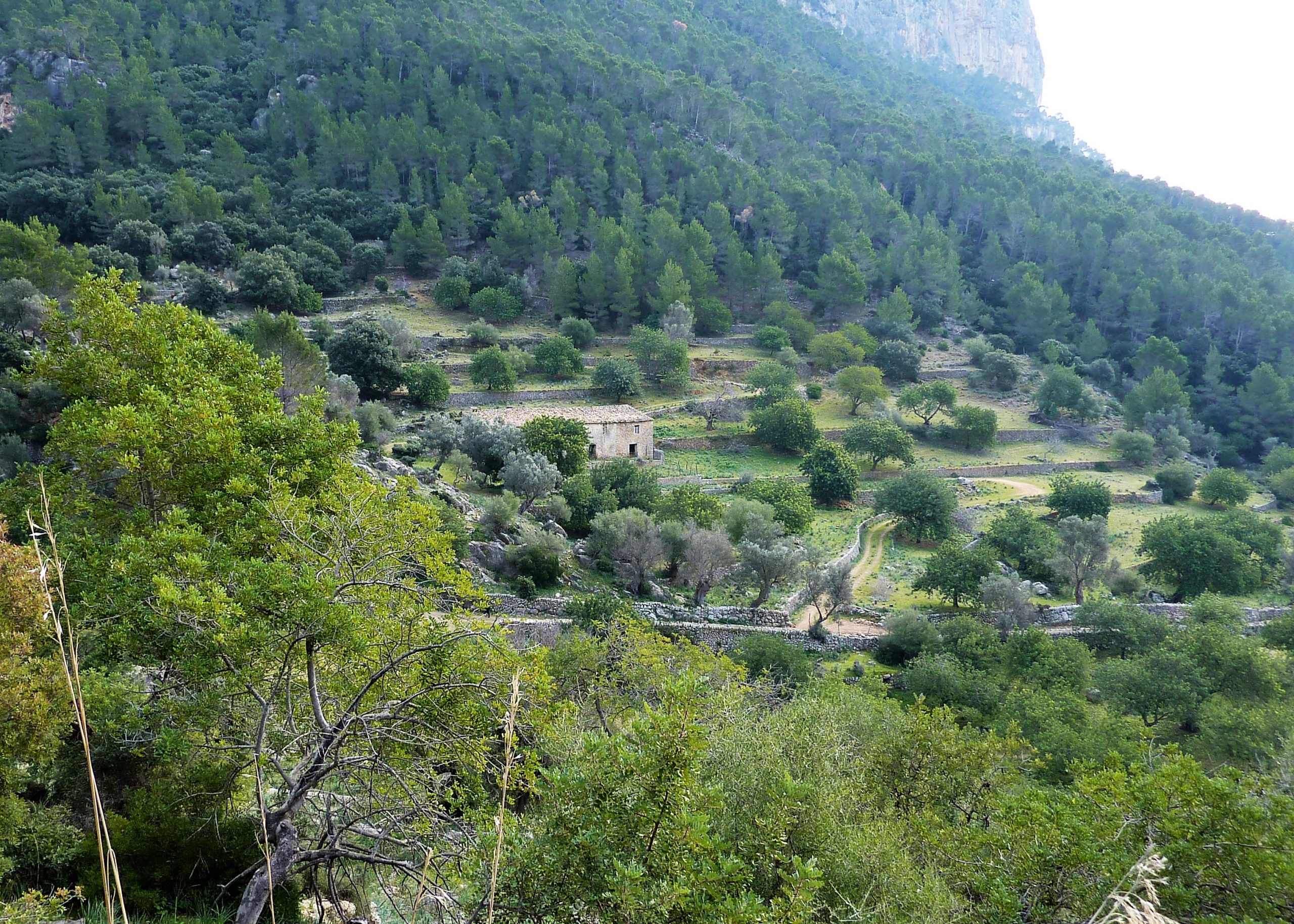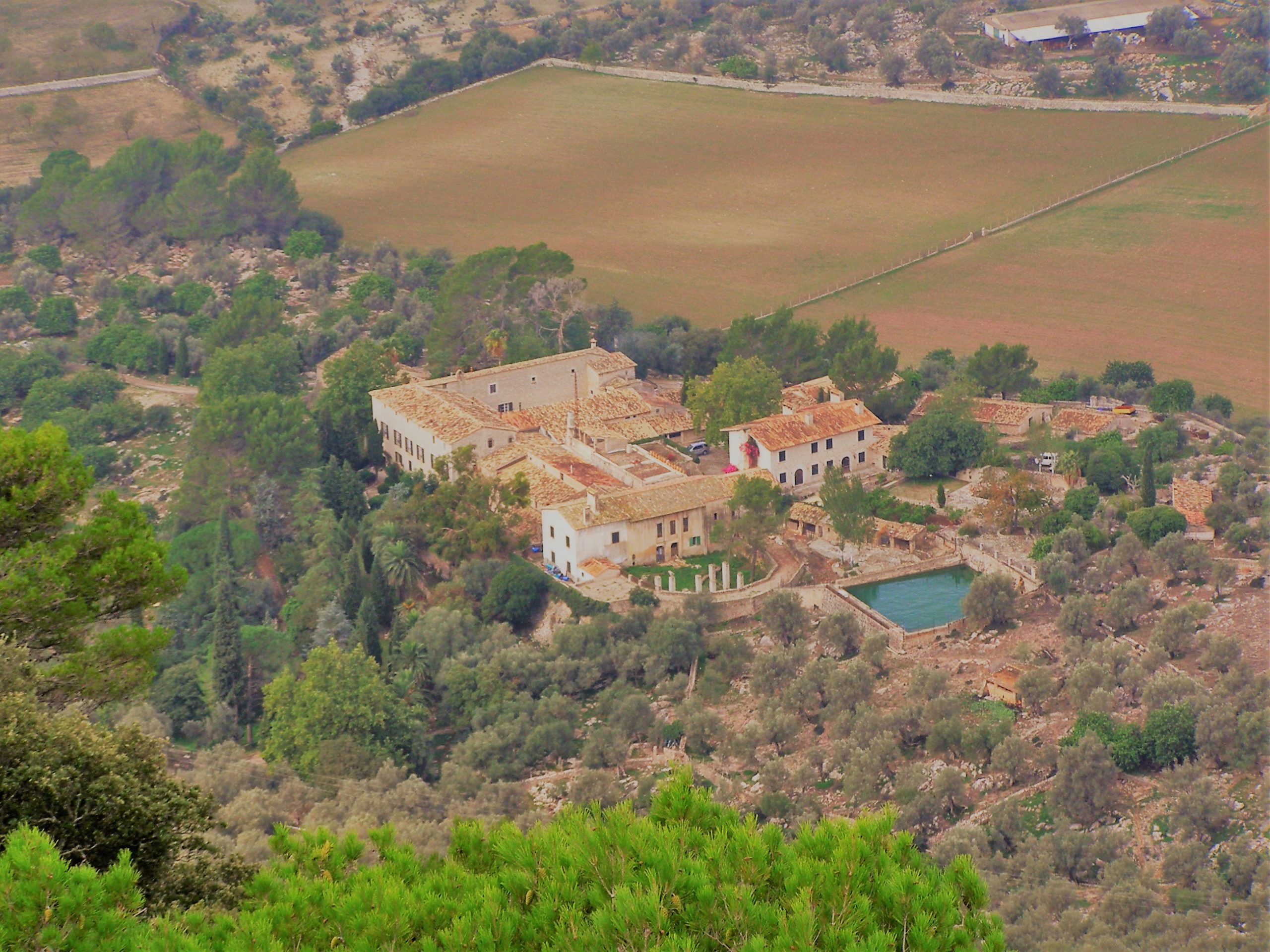 Sota la protecció llunyana de les parets septentrionals del Puig de Sant Miquel arribarem a una ampla collada coneguda com a Coll de la Tanca Nova. Les oliveres s’eleven fins als peus del roquissar del Puig.El camí ara agafa sentit descendent i permet un pas còmode i ràpid fins a connectar amb el tram de GR221 que enllaça Solleric i Tossals Verds. En pocs minuts arribem al conjunt de construccions que conformen aquesta impressionant possessió, reina de Tramuntana.