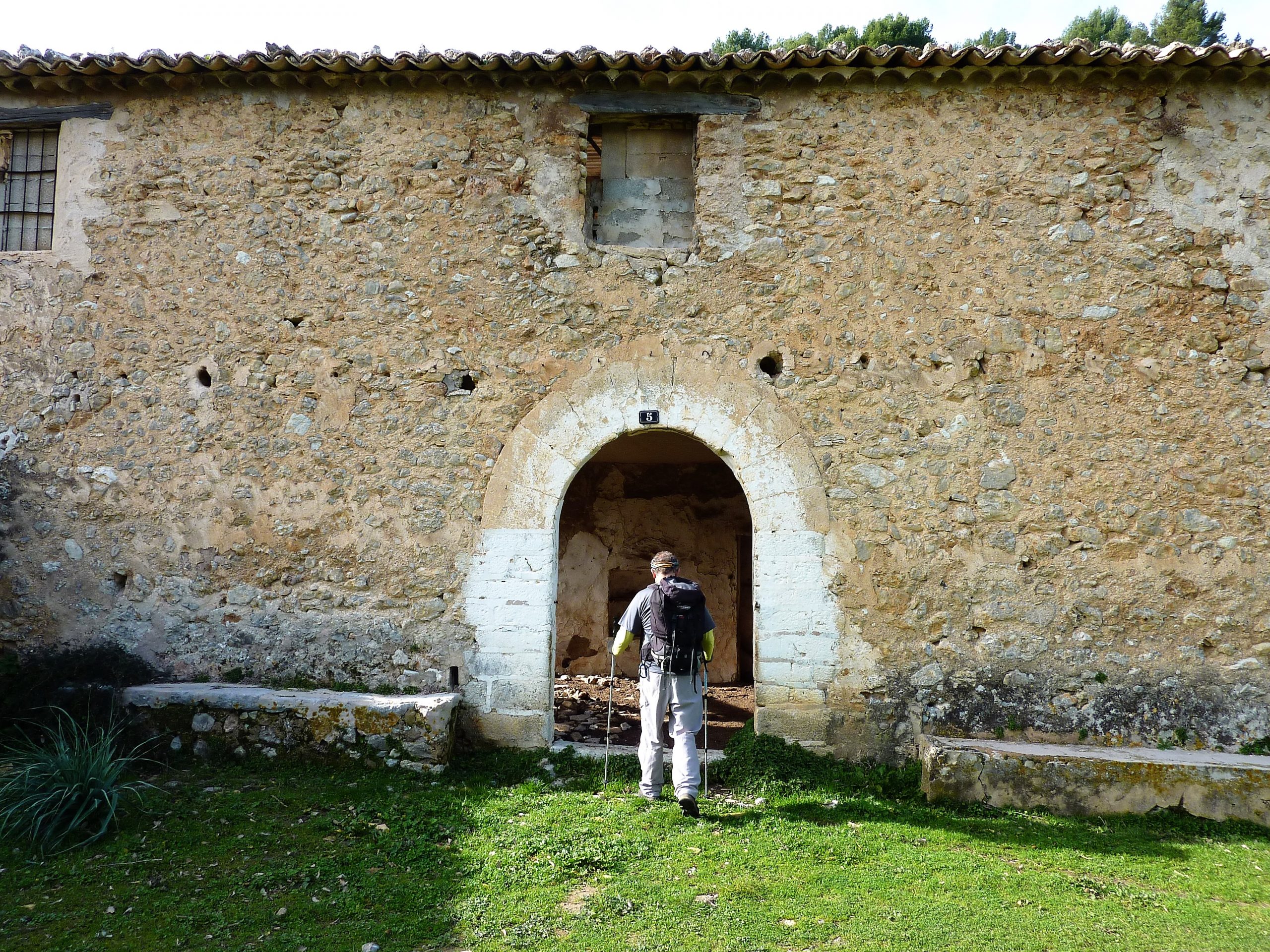 Agafem el camí que surt de les cases en sentit descendent i en arribar al punt en el qual gira bruscament cap a la dreta hem de seguir tot recte. Després de resseguir el peu dels cingles desemboca en un conjunt de marjades d’oliveres que es van elevant cap a una collada tot seguint una pista excel·lent. Aquí tenim ocasió de l’obra de l’home que, per centúries, ha modelat el paisatge per construir-ho d’acord amb els seus interessos.