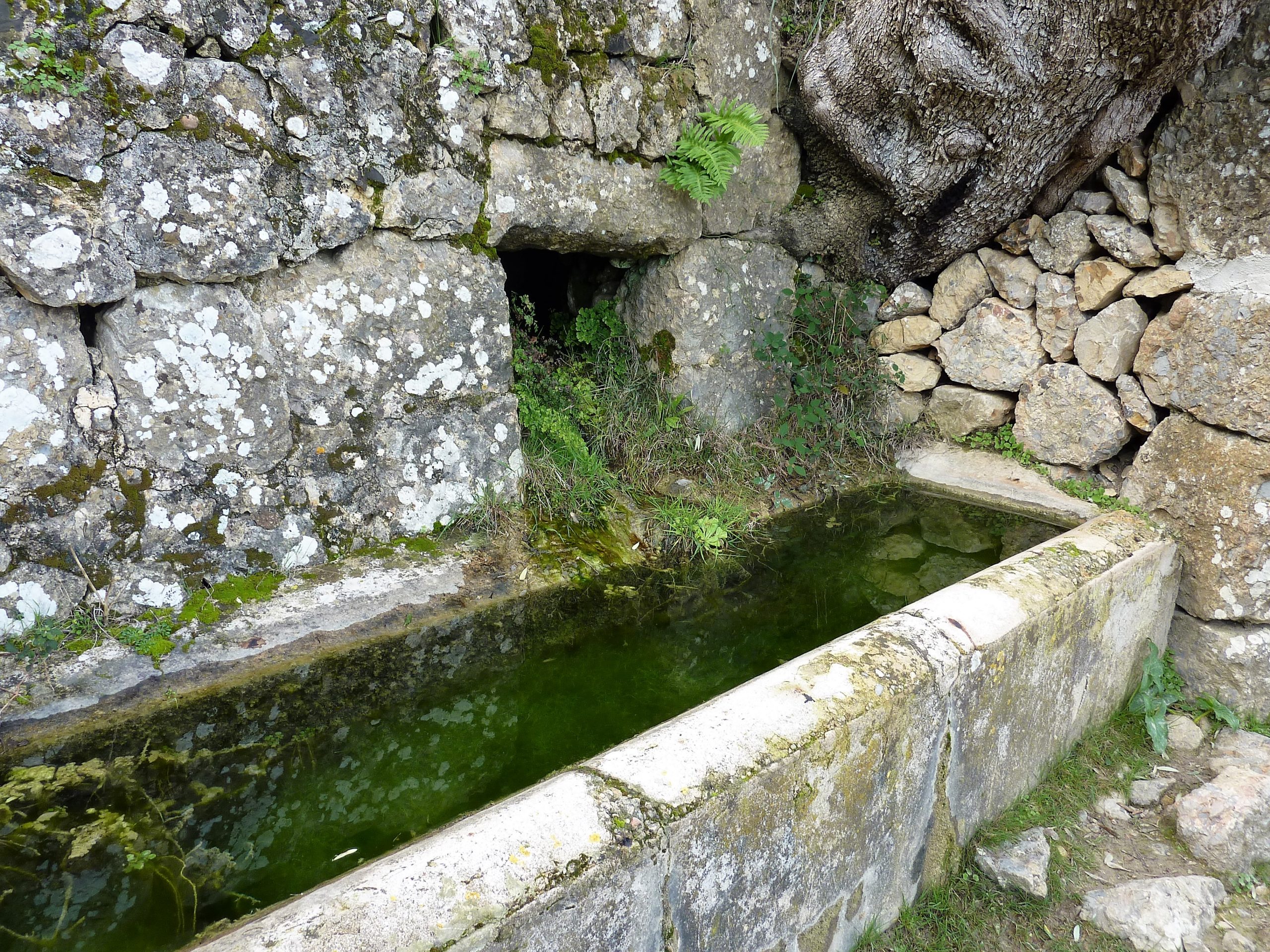 En dues voltes més serem al costat de les cases de Sa Font Figuera. La vista sobre tota la vall i les verticals parets és extraordinària. Si parem atenció i tenim bona vista veurem com al costat de Tramuntana del Castell es poden veure algunes restes de les murades que defensaven l’entrada. Les cases –antigament conegudes com de Sant Miquel de Sa Carena- s’alimenten de l’aigua que brolla de la font del mateix nom. Si la volem localitzar a la volta del camí que gira per anar darrere les cases veurem un rentador amb una pica. Just hem de seguir la canal de teules, molt malmeses , fins a arribar a la Font. La web www.fontsdetramuntana descriu la surgència “… està a uns 130 metres en línia recta de la casa homònima, cap al nord, a escassos metres del camí de Solleric i també prop d’un dels accessos a la finca d’Oli Clar. És una font de mina no gaire llarga, amb prou feines uns 5 metres, construïda de pedra en sec íntegrament. La galeria té forma rectangular amb sostre de volta amb forma d’arc de mig punt i en el sòl no s’aprecia canal. Al fons hi ha dos ullals un a cada costat. “