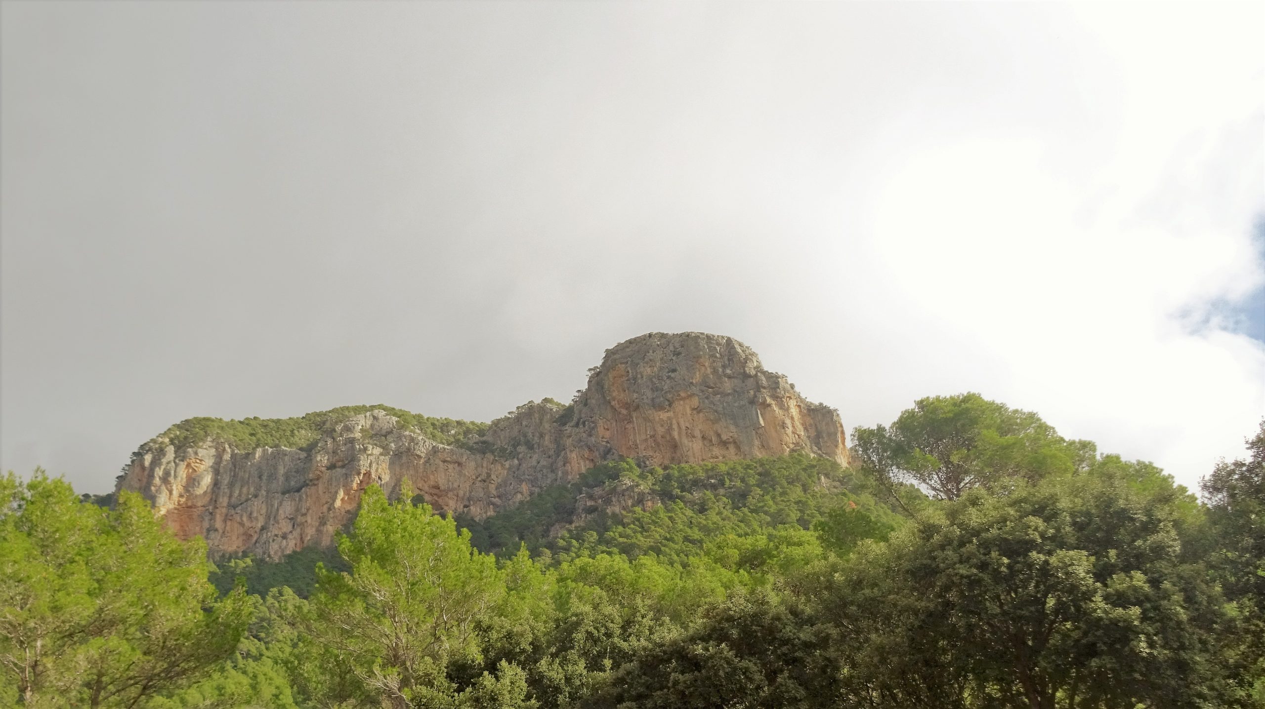 Ara prenem el caminal que surt a l’esquerra per iniciar la pujada. Una estirada, gir a l’esquerra per, unes passes més enllà, tombar de nou a la dreta per obrir un suau gir a l’esquerra. El càrritx va guanyant la partida i el bosc s’ha aclarit, donant pas a un terreny empinat amb domini de l’ullastre. Una paret mitgera ens servirà com a referència. Anant per la seva esquerra anem enllaçant petites fites mig amagades entre les mates. El rocós cap cucurull ens esperà després de l’esforç.
