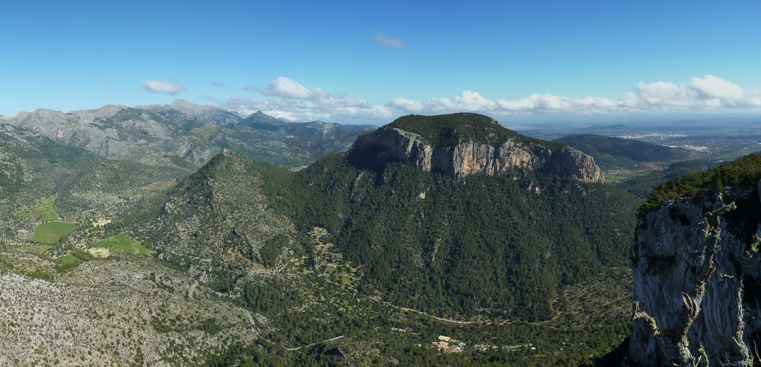 Aquesta modesta elevació de 661 metres ofereix una de les vistes més sensacionals sobre la part central de Tramuntana. Agafant el Puig Major com a referència i seguint el sentit horari localitzarem Tossals Verds, Massanella, Puig de N’Ali. Continuant i rodejant el Clot d’Almadrà, el Puig des Suro i el Puig de Sa Creu. Just al Sud el queixal gegantí de S’Alcadena, amb la seva part superior coberta d’un dens bosc. Tancant el cercle, el Castell d’Alaró i L’Ofre.