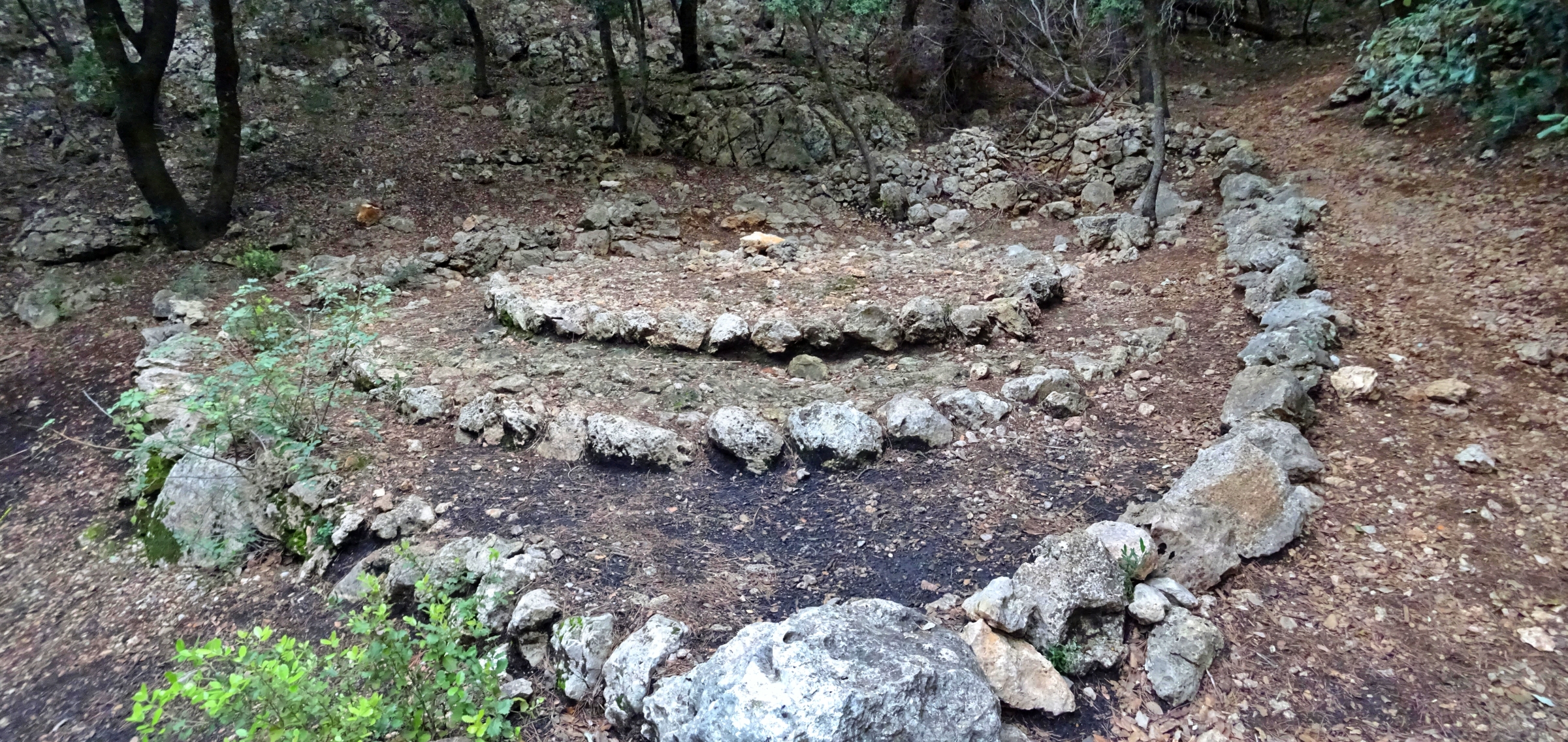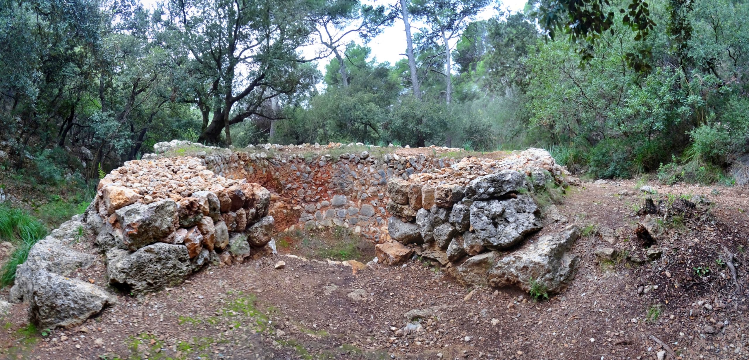A banda de les formacions típiques del fenomen càrstic, hi trobarem un element peculiar. Algú —tal volta el mateix Mesquida?— va tenir la paciència d’excavar la roca per fer-hi petits cocons que recollien l’aigua que transpira la roca calcària. Retornarem al camí i seguirem l’itinerari principal fins arribar a un ampli portell que ens dona la benvinguda a Sa Comuna de Bunyola.