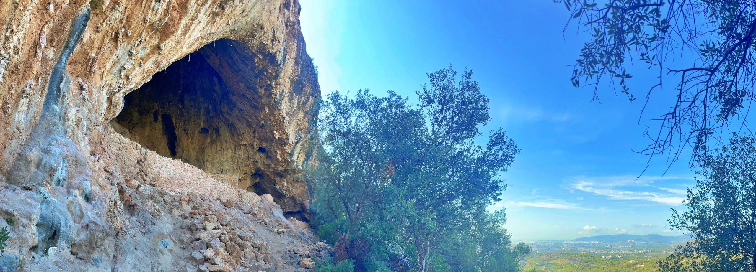 Les dimensions de la gegantina portalada de la cova no deixen ningú impàvid. El bosc s’obre per la dreta i permet veure les instal·lacions de l’Hospital de Caubet, situat al costat del puig de Son Moranta. Si afinem la vista, al sud-oest, les darreres muntanyes de la Serra de Tramuntana treuen el cap.