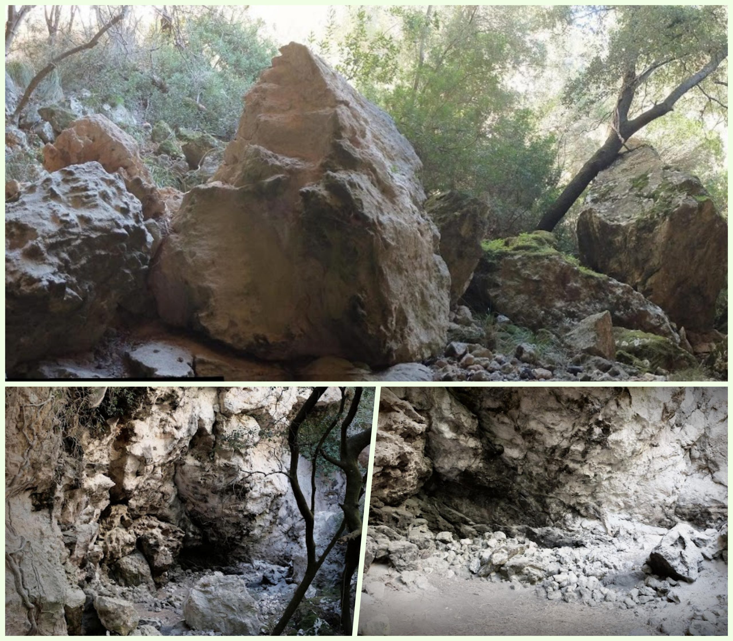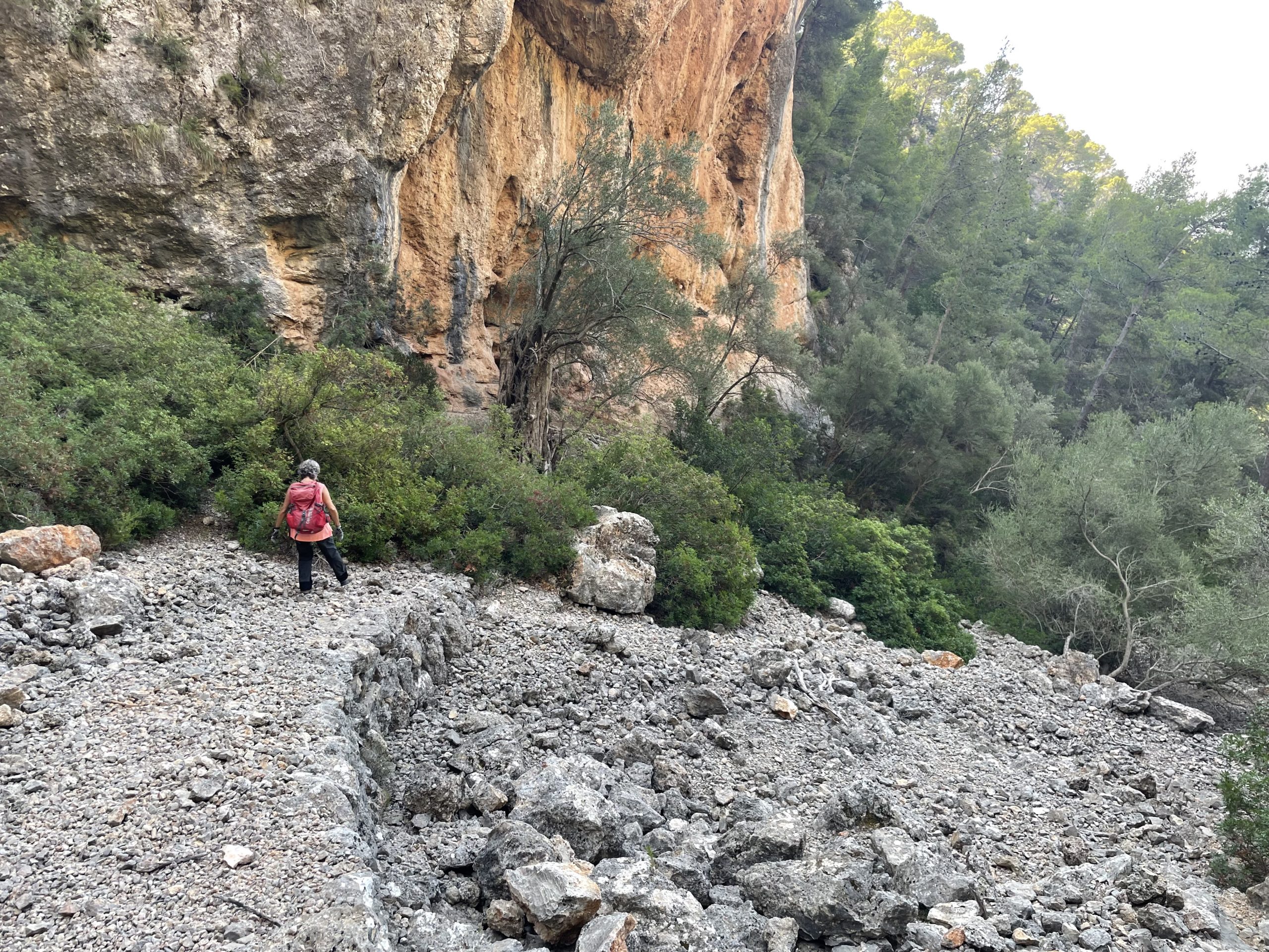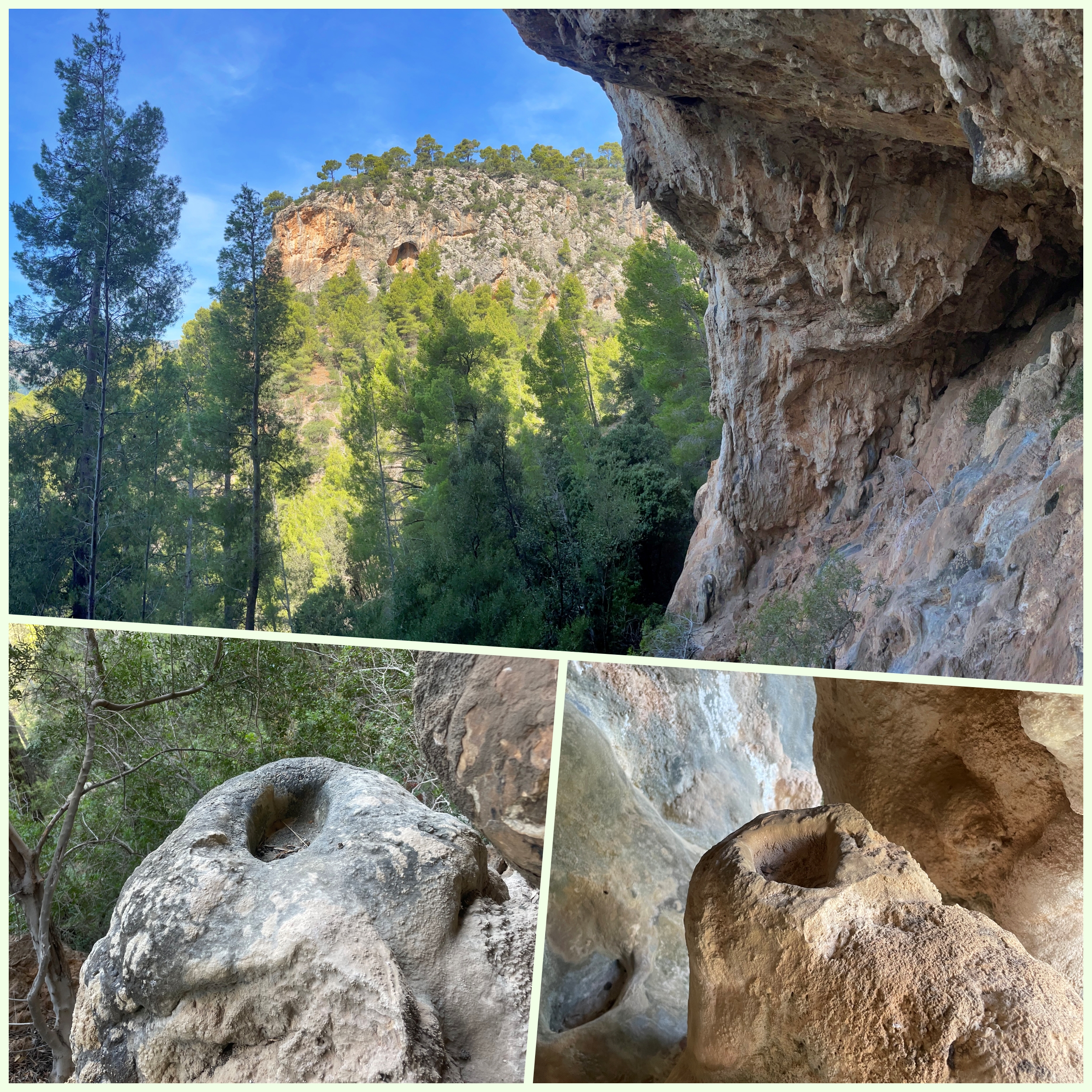 Després d’haver recuperat l’alè i normalitzat el ritme cardíac, resseguirem petits senders que s’estenen al peu de les parets verticals, cap a la dreta. Aquí i allà veurem indicis de l’activitat dels admirables esportistes que s’atreveixen a superar aquestes roques dretes que s’alcen cap al cel. Algunes petites obertures i cavitats de formes capritxoses ens confirmaran que som en el bon camí.