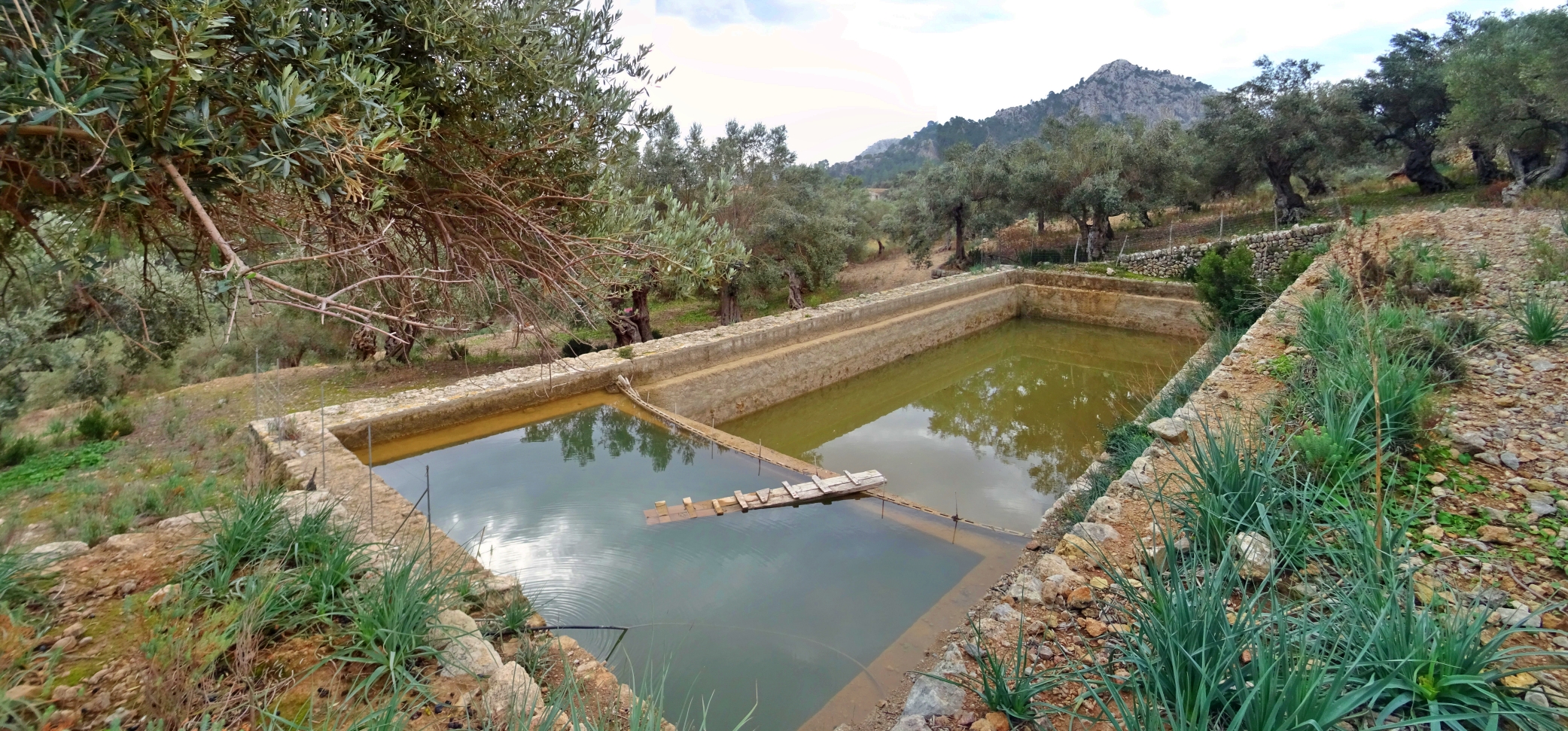 Al cap de pocs minuts, i després de creuar uns pontets al costat de l’horta de la finca, arribarem al Torrent de Pastoritx que recull les aigües de la Serra de Son Moragues pràcticament a l’altura del cim d’Es Teix.