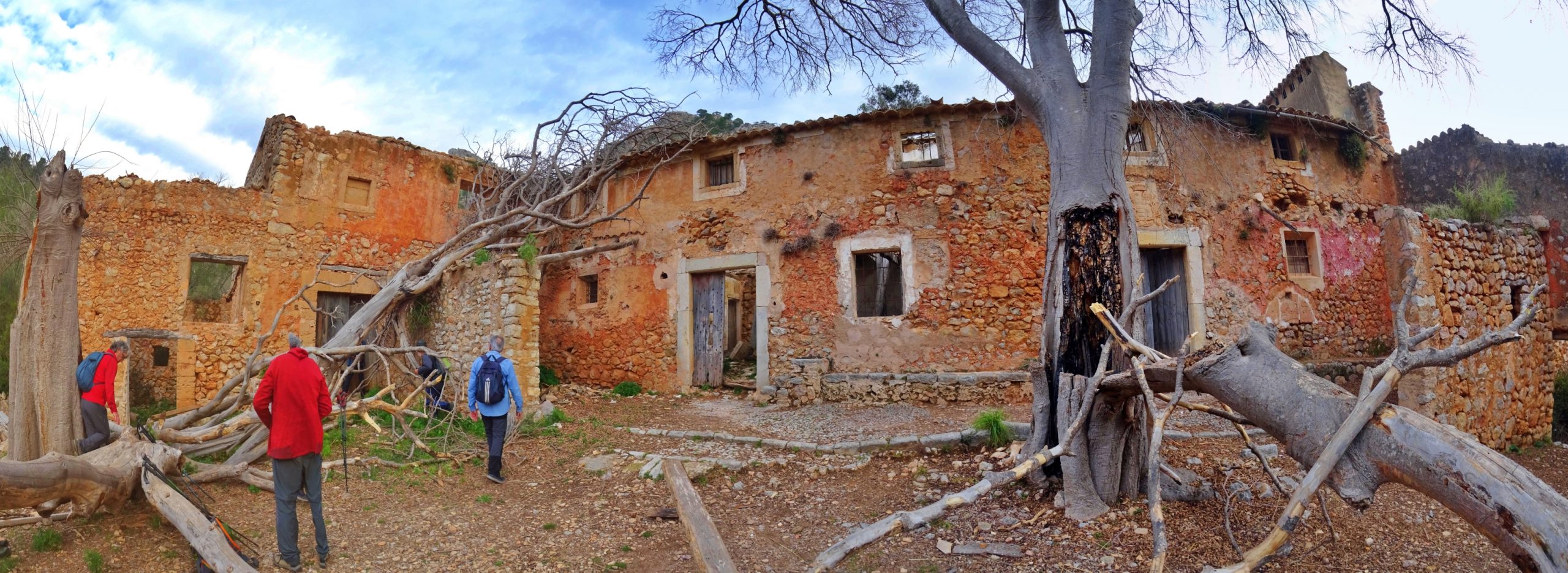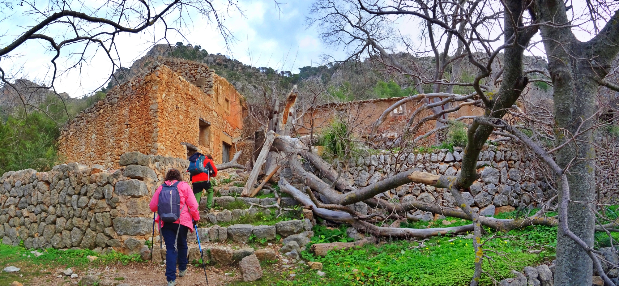 En superar un altre pont deixarem de nou a l’esquerra el camí que ens portaria pel Comellar de Ses Mines per continuar. Ara el camí torna tirany i s’interna en un terreny greument afectat pels temporals. Els arbres caiguts han amagat i malbaratat grans segments de l’itinerari i ens haurem d’esforçar a identificar el traçat correcte. Fites, marques i senders trepitjats ens facilitaran la tasca en internar-nos en la part baixa del Comellar de Na Morta sota els penyals del Comellar de Sa Font de Raixeta. En un moment el sender ens convidarà a passar a l’altre costat de la llera. Damunt unes marjades apareixeran les cases –mig derruïdes i a punt de passar a l’oblit- de Raixeta. El puig de Na Fàtima treu el cap a l’altre costat del torrent.