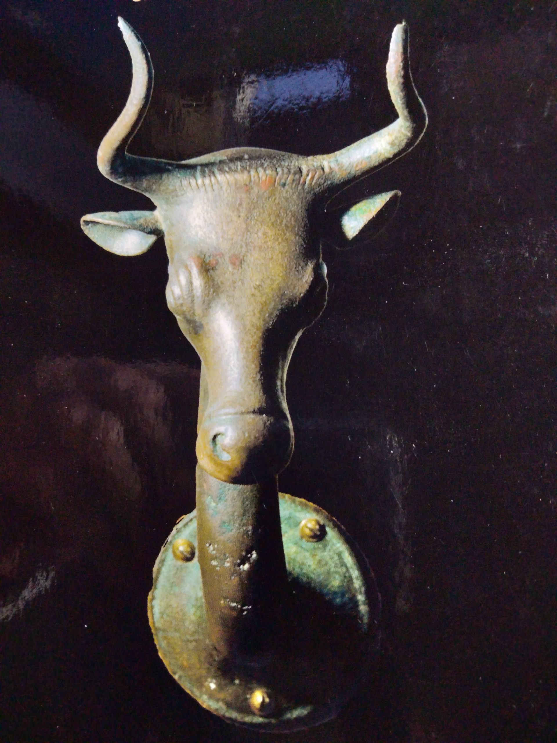 «Un nuevo interesante hallazgo casual, al que no se ha dado publicitat hasta la fecha, tuvo lugar en el pasado mes de julio en una parcela de la finca Es Vilar, término de La Puebla, propiedad del vecino de Búger D. José Servera Camps. Al arrancar éste unas piedras para mejorar el cultivo, encontró a un palmo de profundidad: un cuerno de bronce rematado por una cabeza de toro astada  en perfectoestado de conservación. El ejemplar que mide 37 cm es sin duda el mayor y el mejor  de los de igual representación recogidos en Mallorca, y su factura recuerda la técnica de las famosas cabezas de toro de Costitx, hoy en el Museo Arqueológico Nacional.