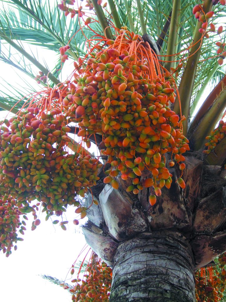 La paraula dàtil és d’origen grec i significa “dit” en clara al·lusió a la seva peculiar forma. La palmera datilera sol fructificar entre els mesos d’octubre i gener, donant com a resultat uns cinquanta quilograms de dàtils per arbre, tot depenent de les més de 300 varietats de dàtils que existeixen. Per tal d’obtenir dàtils de bona mida és aconsellable realitzar tasques d’aclariment tant de fruits com de flors, deixant només la meitat dels que hi pogués haver en un principi.