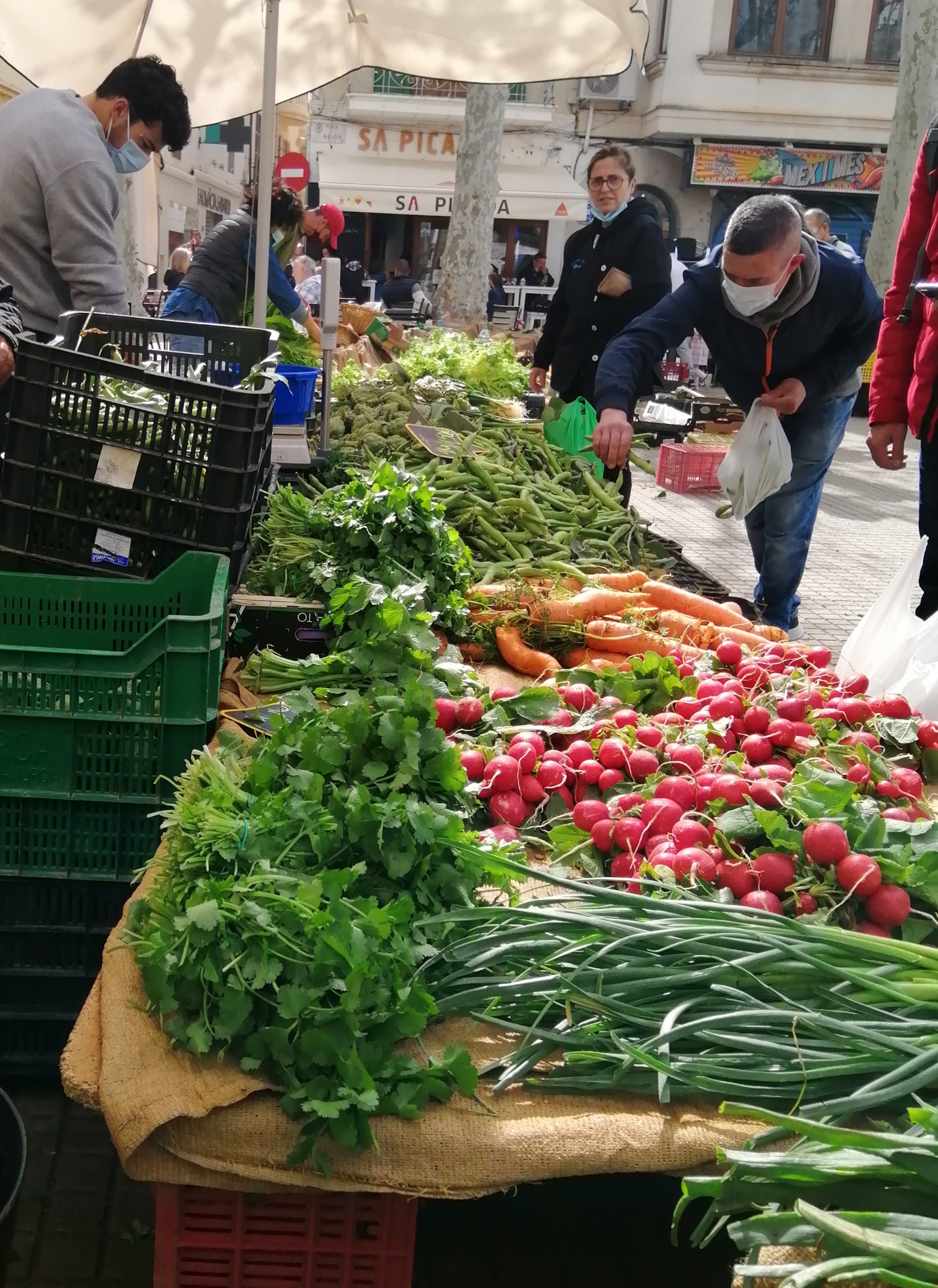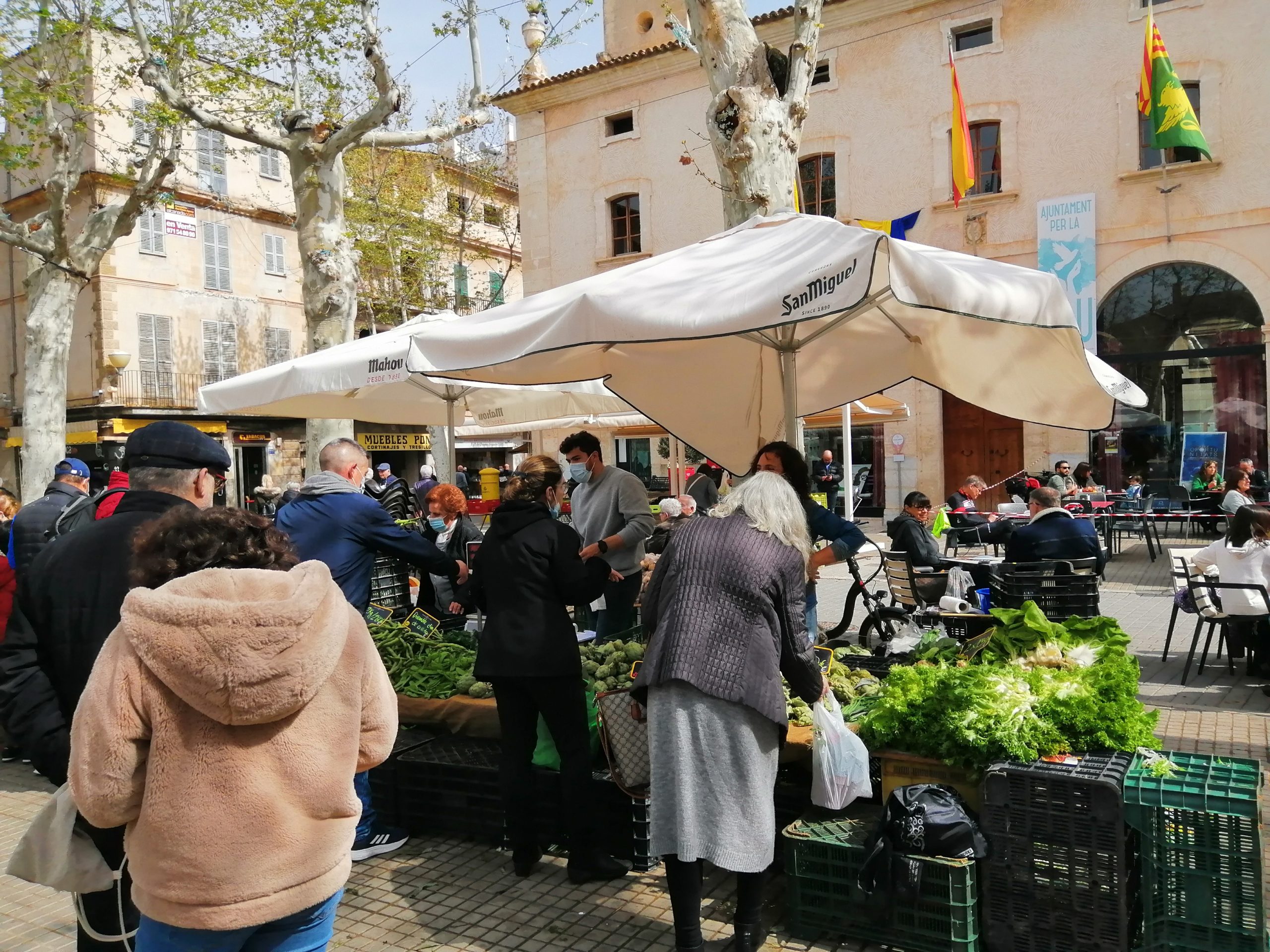 Fer mercat a sa pobla requereix temps, plaer del temps i no frisar. Demà serà dilluns i tornarem a començar, el rellotge arranca dilluns. Ara fruïm del temps, del berenar a mig matí de les paradetes, de la vida.