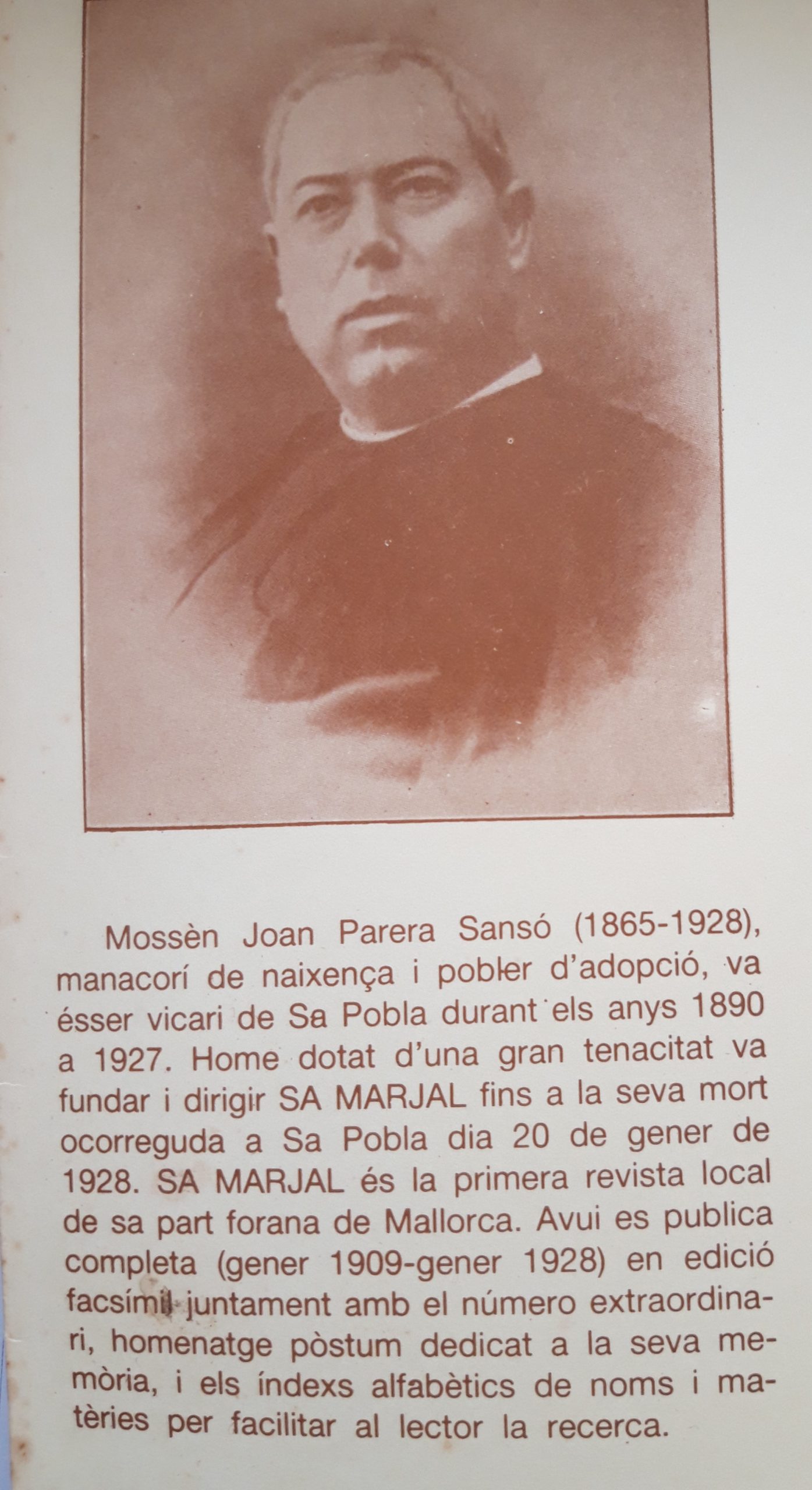 Al reportatge anterior férem una referència a la important obra beneficosocial realitzada pel sacerdot de Manacor amb la fundació del Montepio ‘Un sol Cor’. A aquest capítol tractarem al que, al seu moment i durant nou anys, va suposar, i el que suposa encara ara, i suposarà en el futur, la publicació de la revista Sa Marjal, la primera de les publicacions de la part forana de Mallorca.