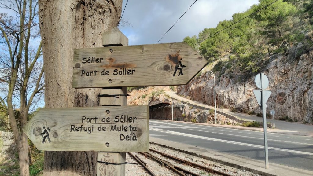 La ruta comença just abans de la pujada amb cotxe al túnel que ens duu al Port de Sóller, podem aparcar abans, no gaire lluny, si per exemple agafem la rotonda amb direcció Lluc, just al sortir de la mateixa ia la dreta del restaurant, hi ha un petit carrer a l’esquerra que si el recorrem sencer ens torna a deixar a la mateixa carretera del Port, en aquest tram podem trobar aparcament amb certa facilitat.