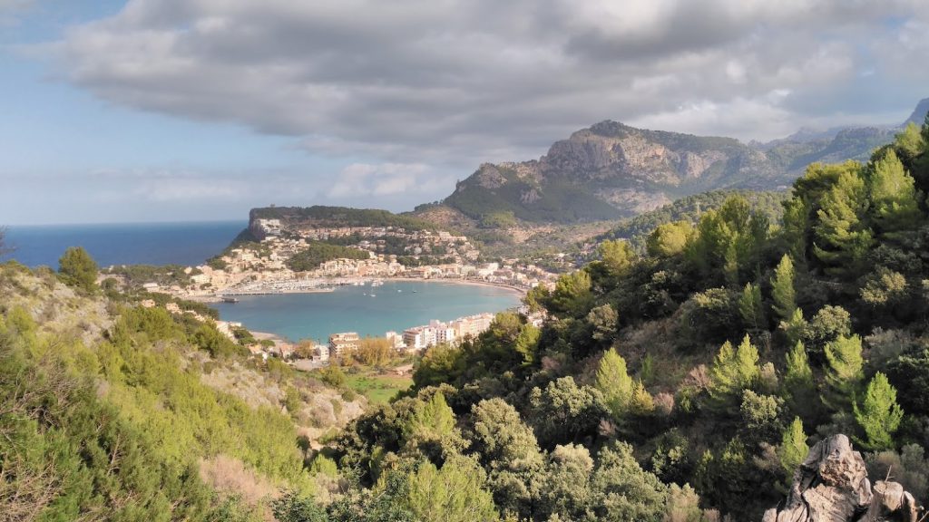 La part inicial és la més costeruda però després el camí és una mica més planer, en un dels miradors més espectaculars veiem el Port de Sóller amb un teló de fons impressionant: «la Serra de Tramuntana», moment ideal per fer un descans i prendre alè.