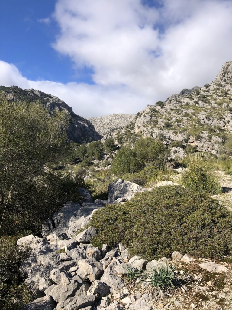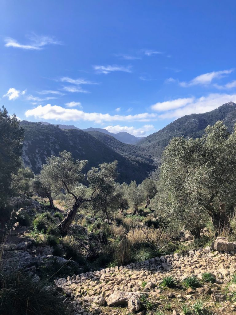 Aquí el paisatge és molt bonic, a mesura que pugem per una banda tenim el puig de S’Alcadena i, de l’altra, el Puig des Tossals Verds. I entre oliveres anem arribant al nostre destí: el refugi. Un cop a dalt a mà esquerra ho veurem de seguida.