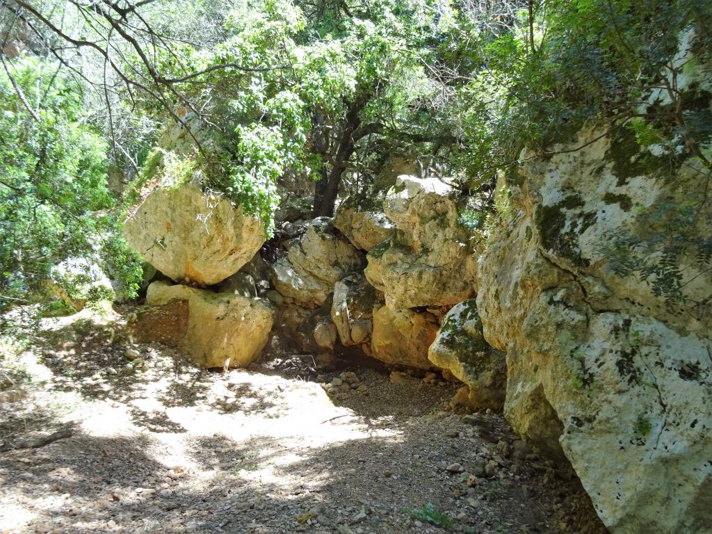 Com si juguéssim a toc i pam, uns pocs metres més enllà, al costat esquerre, apareix la boca de la Cova de Son Cifre. Es tracta d’un element catalogat i amb protecció d’alt nivell donada la presència de restes d’època pretalaiòtica en el seu reduït espai. Si penetrem en el seu interior, trobarem unes formacions molt curioses. Dos petits cocons excavats en la pedra d’origen i funció incert que s’anomenen Capades de Moros. El nom popular s’origina en la llegenda que atribuïa als sarraïns la seva excavació a cops de cap per expiar els seus pecats o demanar l’auxili diví. I és que de caparruts, ni hi ha hagut des de l’antigor! Ara sortim a la llum enmig de batzers i trobarem, de nou a l’esquerra, un conjunt d’esglaons metàl·lics que faciliten l’accés a la llera als més atrevits. El recorregut fins ara ha estat senzill i distes, sota la cobertura d’alzines i figueres bordes. De vegades perdem de vista les parets del barranc, que apareixen amb formes fantàstiques esculpides pels elements.