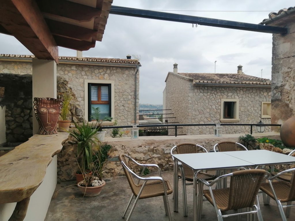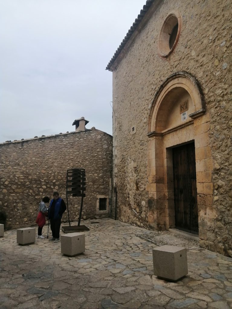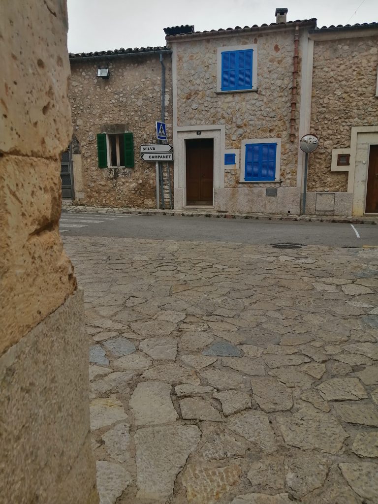I així enfilam, tranquil·lament aturant-nos a tots els racons que trobam que el nostre mòbil pot recollir i després compartir amb el lector. Passam per davant l’església per a la casa de cultura, racons de cases amb un abeurador, cases restaurades, altres en procés, fins i tot galls i gallines. Però sobretot el paisatge que cap a la muntanya ens duu per terres amb ametllerar, garroves, qualque alzina i les oliveres.