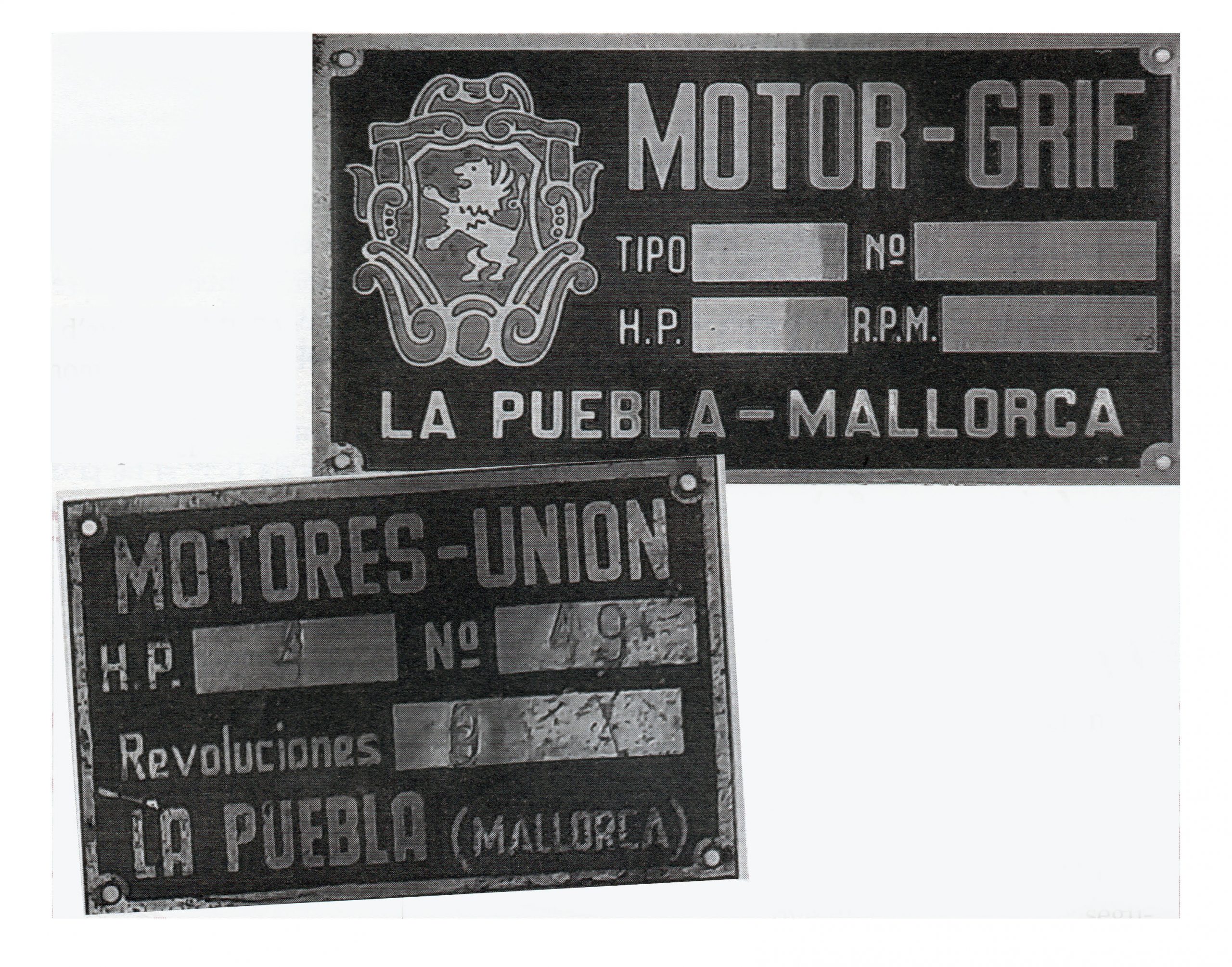 Li van donar voltes a la idea i es van posar a la feina. Una de les primeres passes va ser donar-li nom o marca al motor i van decidir batejar-ho com a “Motor Unión”, que va ser denegat per la Delegació d’Indústria perquè ja existien els Autocars MUSA (Motor Unió S.A.). L’altra proposta va ser posar-los la marca “Grif”, inspirats pel lleó rampant que figura a l’escut d’armes de la vila de sa Pobla. L’Ajuntament de sa Pobla autoritzava la marca amb data 20 de febrer de 1953 amb llicència per a venda de motors i maquinària agrícola, encara que el nom d’Unión ja rodava i així es va quedar i van ser coneguts els referits motors.