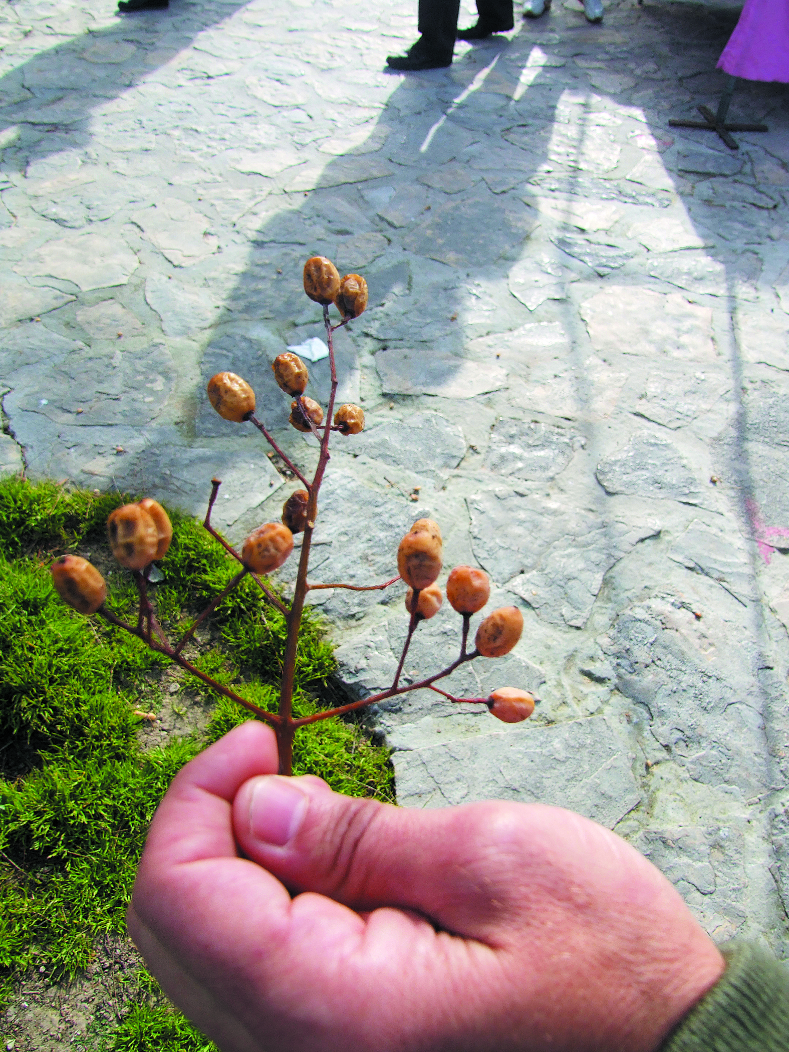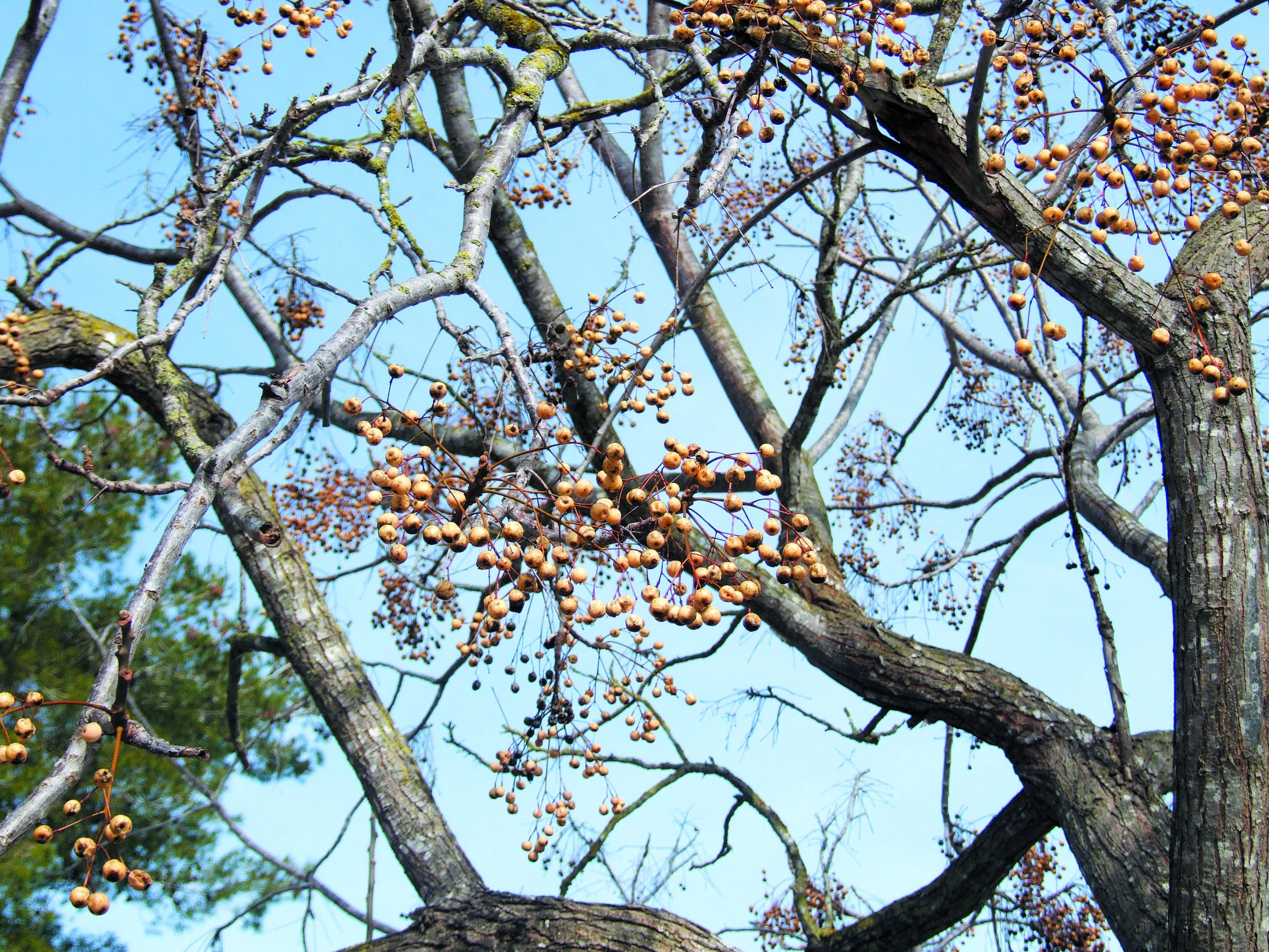 Aquests arbres, les mèlies, presenten en aquesta època de l’any una curiosa aparença ja que, tot i trobar-se encara sense fulles, omplen les seves branques nues amb multitud de fruits, semblants a petites atzeroles, que guarneixen les copes d’aquests arbres i ofereixen una impactant imatge.