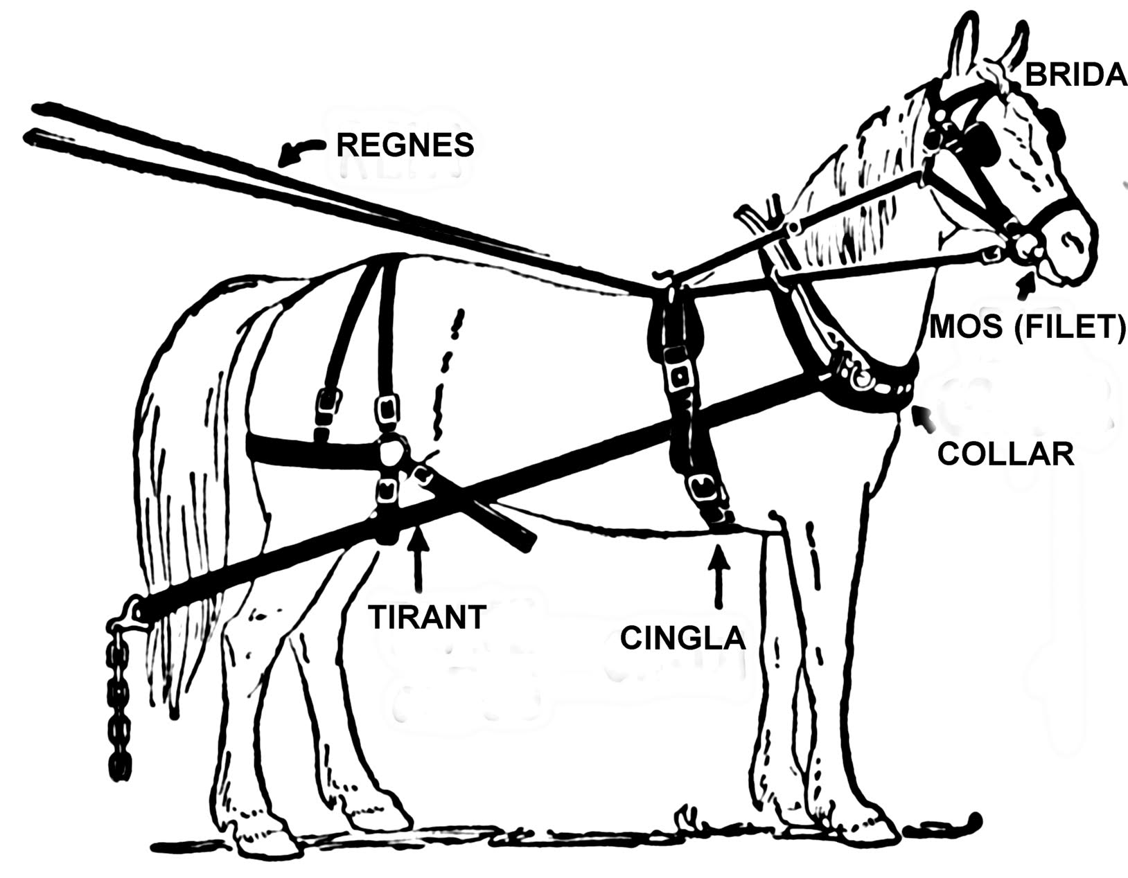 Entre els guarniments més coneguts i emprats per les feines de marjal podem anomenar, la brida, les rendes, la collera, la barriguera, els tirants, el morrió, les cucales. Peces, totes elles de cuiro, fabricades pels selleters, qui també procedien a la seva reparació.