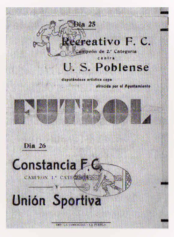 A las 6 en punto de la tarde GRANDE Y EXTRAORDINARIO PARTIDO DE FOOTBALL amenizado por dos bandas de música en el campo del Ràpid Sport F.C. Poblense. Primer encuentro entre los renombrados eqipos Unión Sportiva de Mahón campeón de Menorca y la Real Sociedad Alfonso XIII campeón de Mallorca y Baleares, organizado por la sociedad La Peña Artística Deportiva de esta villa y patrocinado por el Magnífico Ayuntamiento de esta Villa que regalará preciosas medallas de oro y plata a vencedores y vencidos de los dos encuentros que se anuncian.
