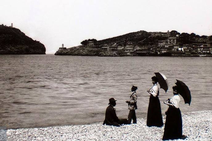 Passejada primaveral, sobre les bales del Port de Sóller, a començament de segle, les senyores amb para-sols, i els homes amb capell, per protegir-se dels efectes de l’Astre Rei. (FOTO: Arxius Joan Oliver).