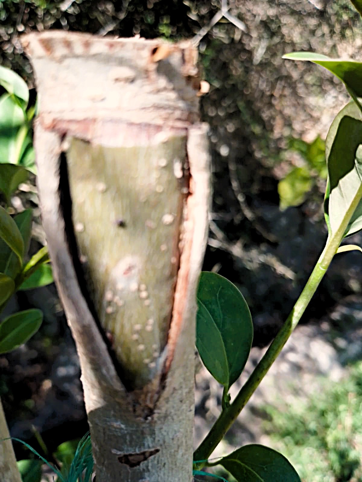 Empelt d’olivera, damunt una troana japonesa. (FOTO: Pere Coll).