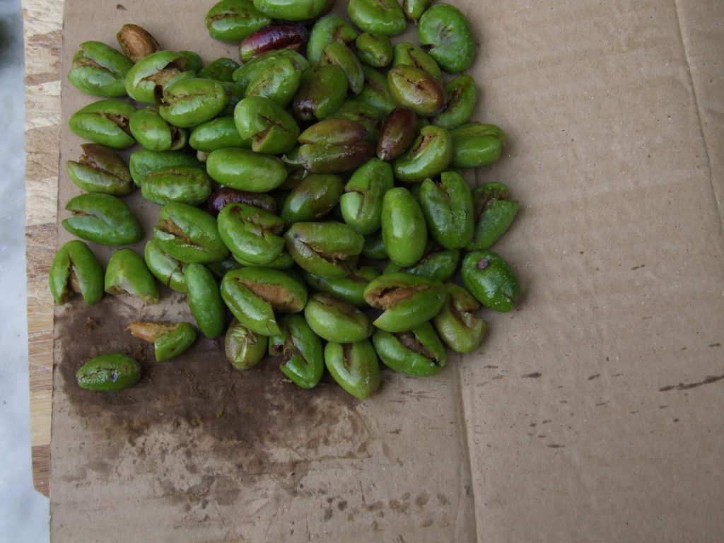 Per dur a terme aquesta operació convé anar molt alerta amb els esquitxos –sobretot als que van a parar sobre la roba o al trespol- ja que el suc d’oliva verda taca molt i és molt mal de fer fugir.