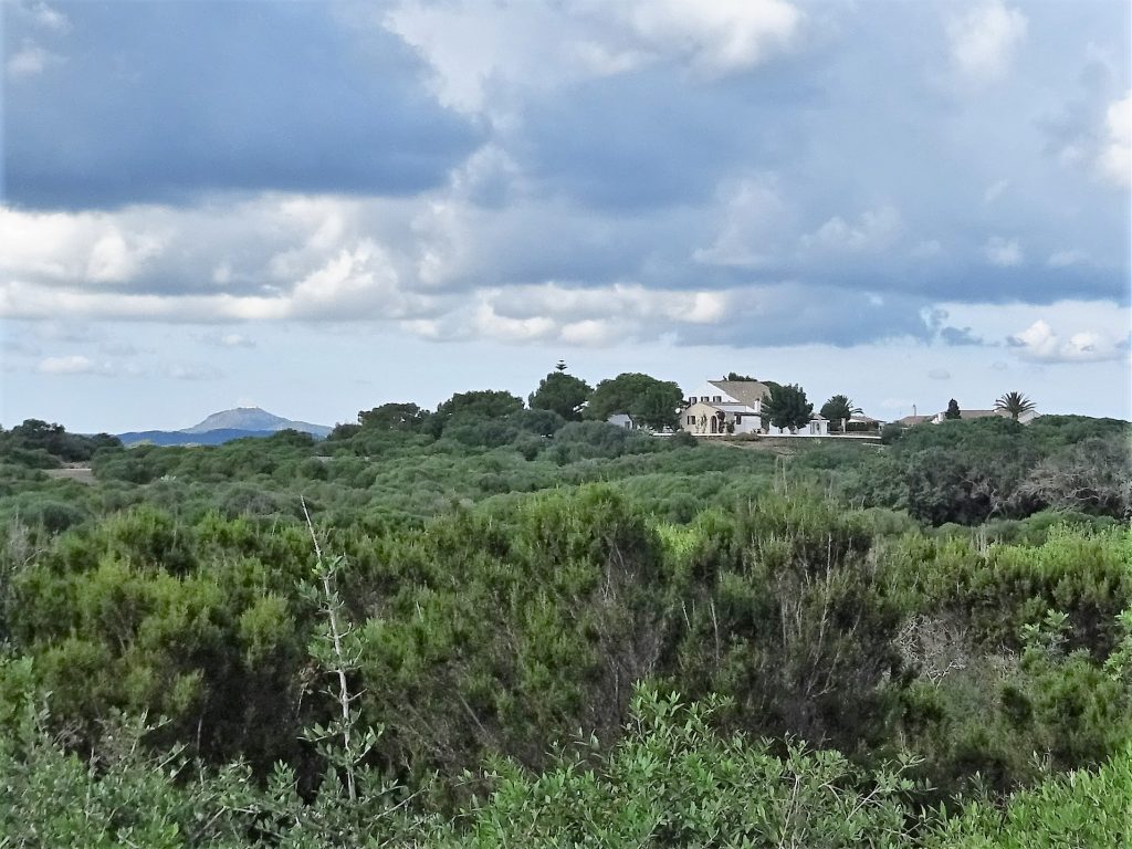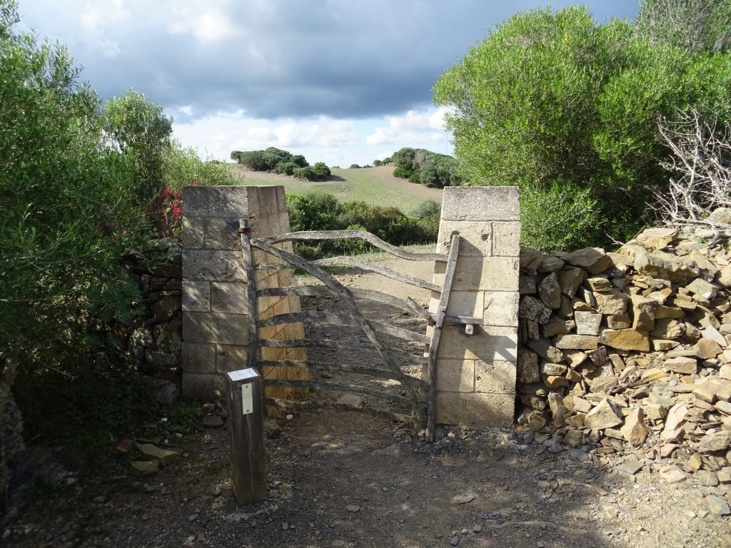 Una mica en perspectiva, les blanques parets del Santuari de Santa Maria del Toro, a on es conserva la imatge de la Mare de Déu, patrona de Menorca destaquen sobre el verd dels camps. Deixant les cases a mà esquerra anem voltant en direcció nord fins a creuar una ampla pista. Si la seguíssim en direcció a la dreta ens portaria a Sa Rinconada i al Caló de Ses Mandries, dos bonics llocs a on prendre un bany. Ara el camí s’inclina suaument i ens facilita el nostre trànsit. Superem un portell i en situarem en un terreny ondulat, amb alguns arbres aïllats i separacions formades per bancals de mates i petites alzines. Un gir brusc cap a la dreta ens permet trescat pel fons d’una petita vall. Un portell ens fa desembocar en la carretera MA-5 Maó – Es Grau. Ara arribem instants complicats. Hem de caminar en direcció cap Es Grau pel costat esquerre de la carretera. Veurem les cases de Sa Bassa i els conreus de S’Hort de S’Albufera regats per les aigües del Torrent Petit de Na Bona. L’asfalt ens castigarà per uns 700 metres.