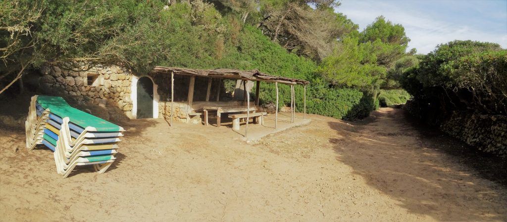 De l’estreta Cala Fustam sortim per la dreta per un camí que s’enfila progressivament damunt els cingles al límit entre l’ombra de la garriga i el blau de la mar. A la dreta observarem una endinsada oberta en la pedra arenisca. És Sa Caseta dels Pescadors, un antic lloc d’habitatge prehistòric reaprofitat pels diferents pobladors i cultures que s’hi han establert a Menorca des de l’antigor.