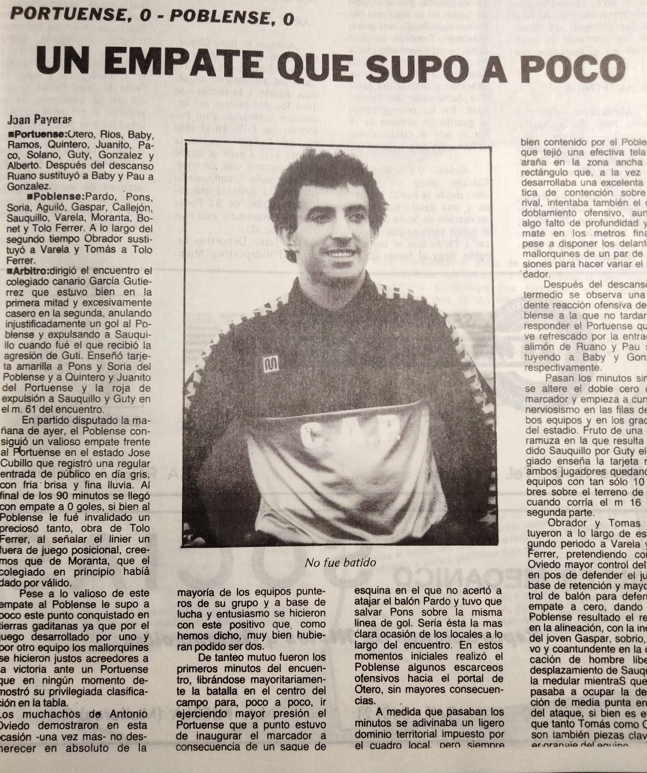 Davant aquella postura, l’entrenador Antonio Oviedo, va decidir viatjar pràcticament amb dos equips per si la vaga es desconvocava a darrera hora o si es duia a terme. Així, viatjaren a Madrid els futbolistes que tenien fitxa professional i els «amateurs» i juvenils que l’entrenador va considerar idonis per confeccionar una alineació o l’altra. Per tal circumstància tingueren l’oportunitat de debutar a Segona B, els jugadors José María, a la porteria, a més de Esteva Payeras, Domingo Remolà, Miquel Pol Reus, Màgic Díaz, Jaume Serra «Marrón», i Miquel Àngel «Rito», mentre els professionals Sahuquillo, Pons, Aguiló, Soria, Franch i Tomàs, presenciaren el partit des de la graderia. El partit va acabar amb el resultat d’empat a un gol, marcat per Tomeu Obrador per part del Poblense.