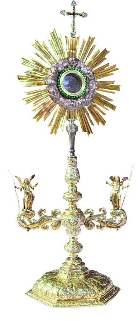 Però el rector es va oblidar d’amagar la custòdia i els vasos sagrats que es guardaven al sagrari de l’altar major. Els malfactors es van endur la part superior de la custòdia, anomenada ‘vericle’ amb els seus raigs centrífugs resplendents, que contenia una hòstia consagrada. Després es van dirigir a la capella del Roser, van obrir la porta del sagrari i es van apoderar de dos copons de plata i dos atuells per servir la comunió, plens de formes consagrades, escampant-se’n unes quantes per terra.