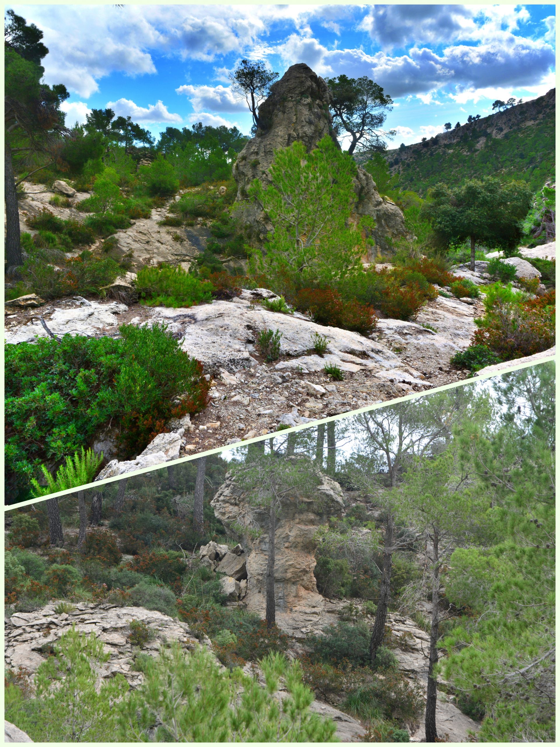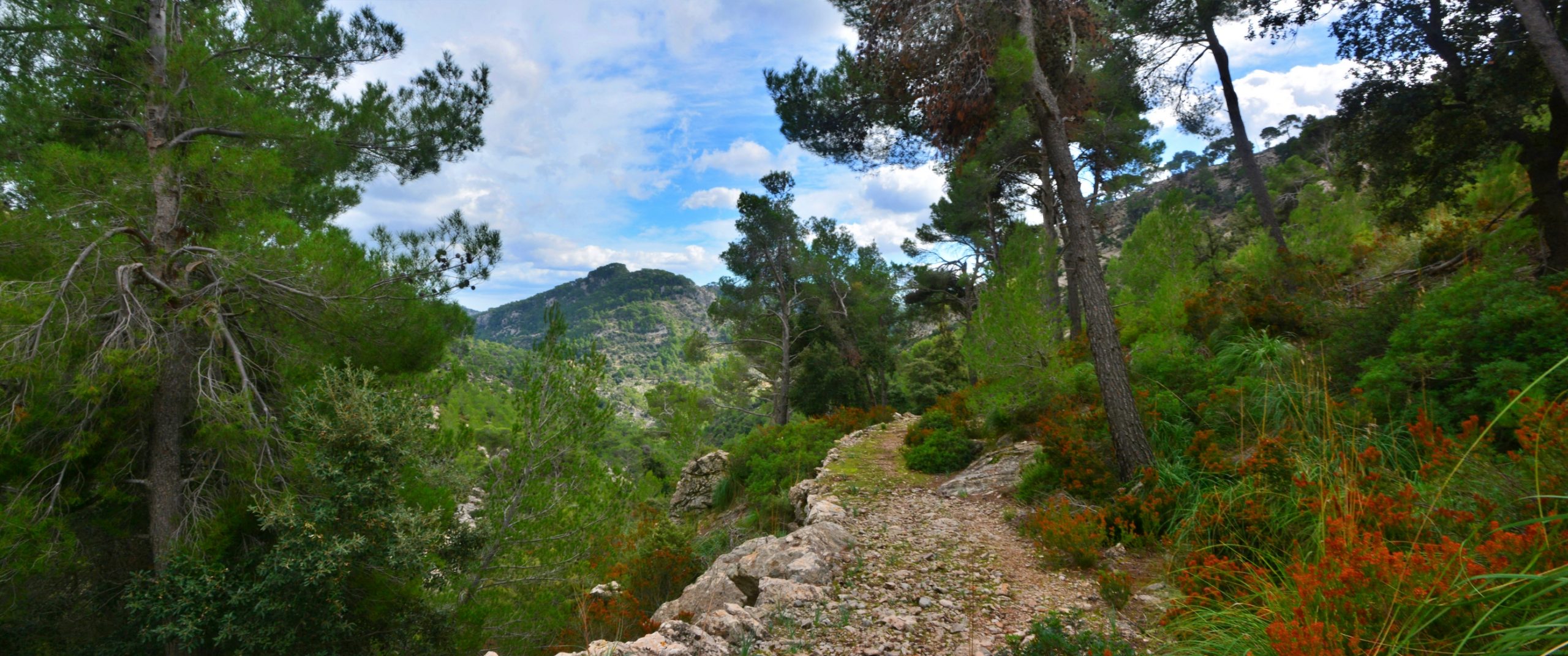 El paisatge evolucionarà des de les marjades esplèndides d’oliveres centenàries als peus del Puig de Sa Creu i el Puig de N’Escuder fins als frondosos alzinars explotats per l’elaboració del carbó vegetal. Aquest combustible fou un element bàsic i primordial en la societat illenca fins ben entrat el segle XX. Trobarem cada pocs metres elements relacionats amb aquesta activitat d’una manera o una altra. Els mateixos camins, les sitges, els carregadors, les basses, les barraques… formaran part de la nostra passejada. Tot al peu dels costers del Puig de N’Alí, un impressionant pic per damunt els 1.000 metres.