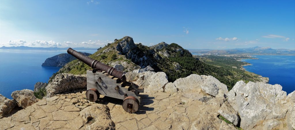 La península d’Alcúdia va ser important en la defensa d’aquesta zona de Mallorca des de l’edat mitjana i de forma especial en l’etapa funesta dels atacs de pirates i corsaris entre els segles XVI i XVIII. Es van construir diferents elements defensius per a protegir la zona de les incursions dels invasors. Un dels més interessants és la fortificació de la Penya des Migdia o Penya Rotja en el qual una petita guarnició es refugiava en una zona inexpugnable amb l’ajut d’un conjunt de canons dels quals, avui en dia, encara hi queda un. Ho farem en una variant que ens permetrà visitar el cim del Puig des Romaní, no massa visitant i que ens oferirà una perspectiva inèdita i copsadora.