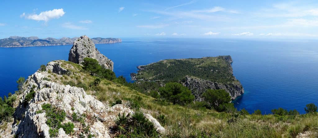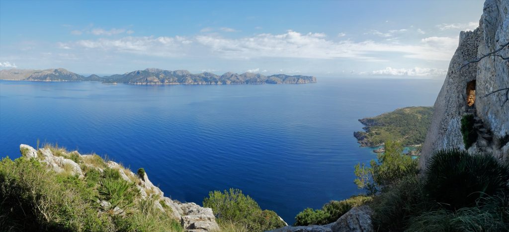 Aquesta ubicació convida a la contemplació del paisatge. Us desafiem a anar identificant els diferents punts de la nostra geografia que és podem veure. No es infreqüent que les costes del sud de l’illa germana de Menorca es retallin en l’horitzó. La mítica península de Formentor i les seves cales amagades s’estiren cap a l’horitzó. Cap Pinar i els seu esplèndid territori incongruentment vedat als simples mortals -son terrenysmilitars- és un racó ple de vivor i harmonia.