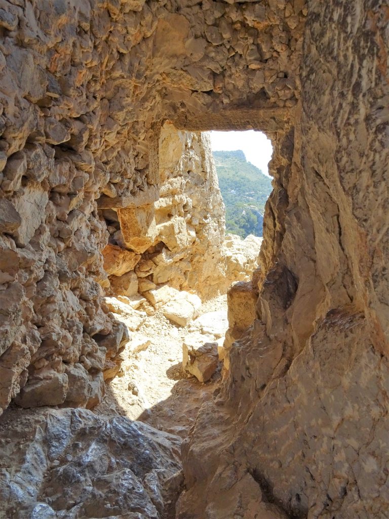Aquest peculiar topònim anomena el lloc que separa el Puig de Sa Falguera a la dreta del Puig des Romaní, el nostre proper objectiu. És la porta de Es Clot, una zona que encara que fou habitada i explotada en l’antigor és avui en dia un terreny extremadament exigent i salvatge. Ara girarem a l’esquerra per iniciar la pujada cap el cim seguint un tirany molt esvaït i algunes fites perdudes. La direcció general ens portarà per una carena que, a mesura que anem pujant, es despulla de la coberta vegetal i ens ofereix una vista sobre la Badia de Pollença que cal detenir-se a admirar. La roca adopta formes peculiars i alguns forats en les parets que miren cap a la mar recorden trets de cares humanes. Un canal còmode ens portarà cap al final de l’ascensió. Girem cap a la dreta per recórrer els metres finals fins al cap cucurull.