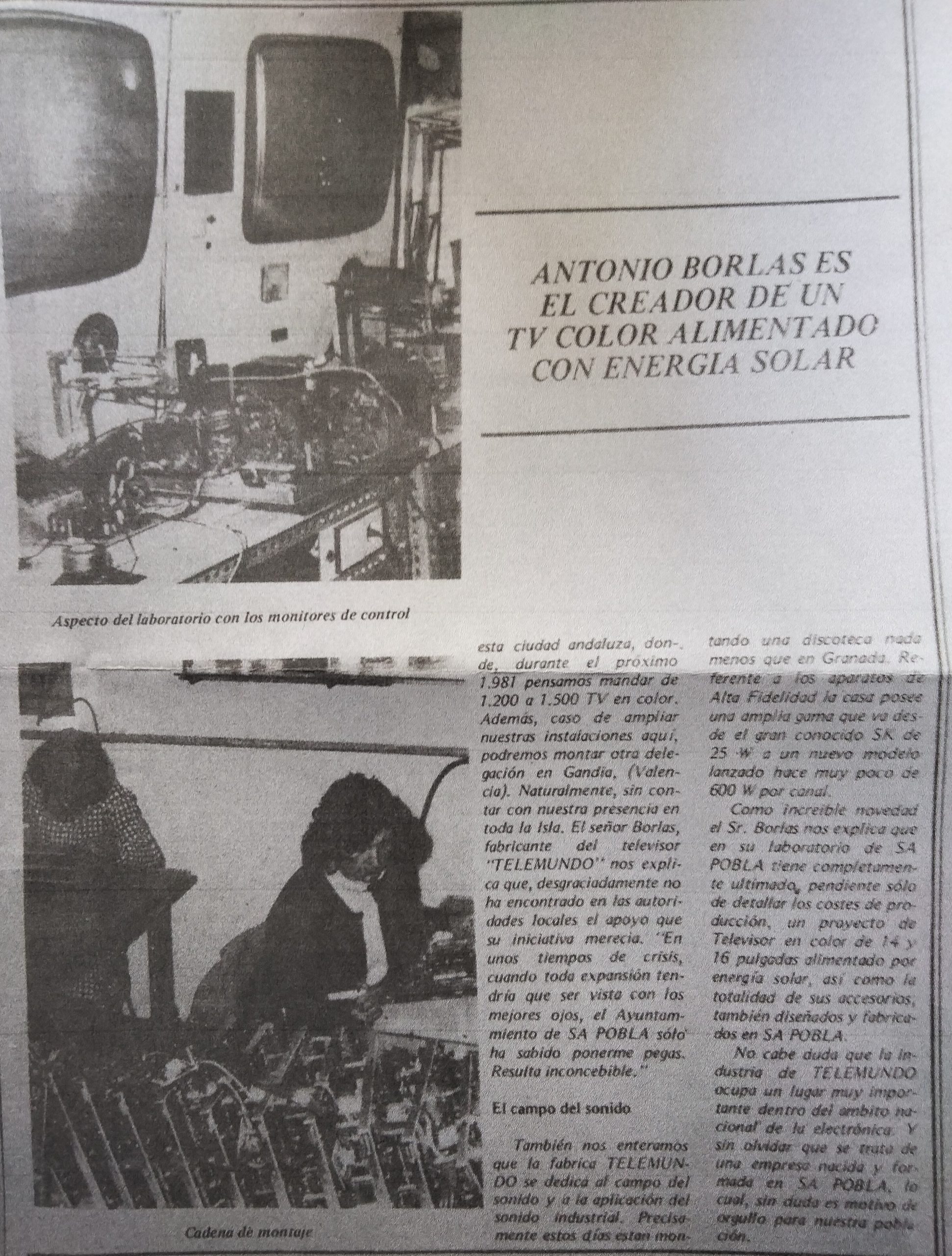 Corria l’any 1961 quan va arribar a Mallorca destinat a Son Bonet com a tècnic electrònic militar, el jove Antonio Fuentes Gallego, natural de Granada. Va conèixer a una al·lota poblera amb qui es va casar. Abans de casar-se, ja s’havia establit a sa Pobla, a la casa del carrer Mercat, actual número 33 a quina planta soterrània, va instal·lar un petit taller d’electrònica. Com a bon coneixedor de tot quan estava relacionat amb la matèria, allà va fabricar el seu primer televisor, que el va batiar amb la marca «Tele Mundo», i el va vendre a Alcúdia. Va traslladar el seu taller al carrer Major, a l’actual número 10 i allà va seguir fabricant televisors en blanc i negre i autotransformadors de 150 Volts, que distribuïa a una empresa de Sóller (El Gas, S.A.).