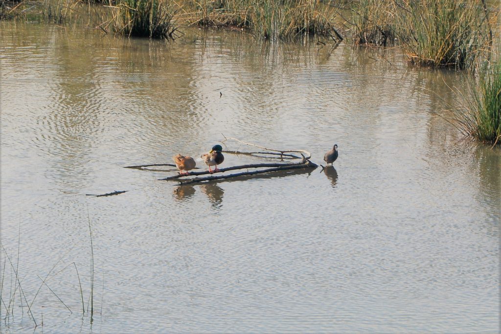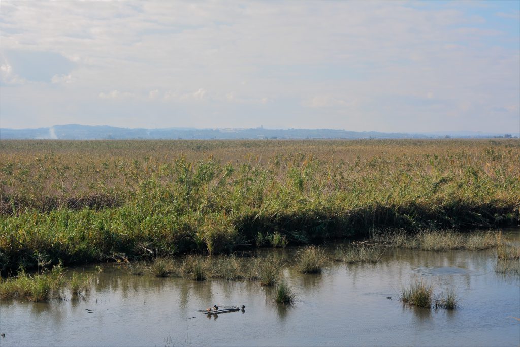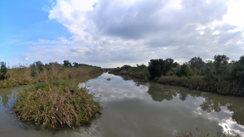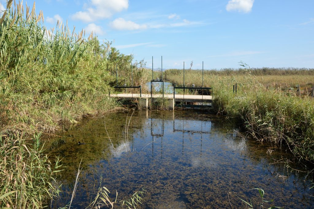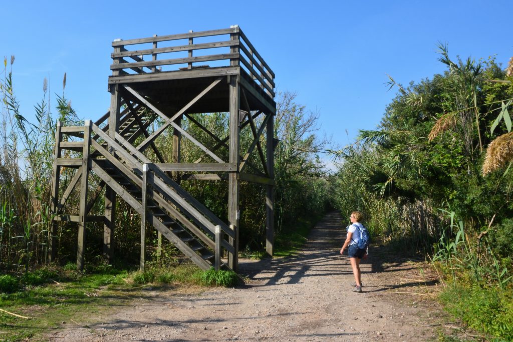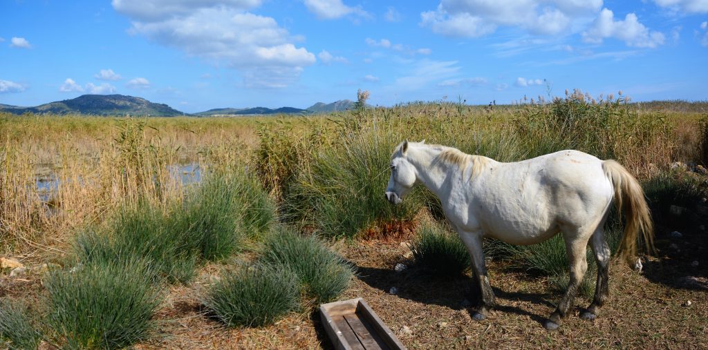 A mig camí un petit mirador a l’esquerra ens permetrà, si tenim sort, admirar un conjunt de cavalls importats de la regió de la Camarga. Són animals perfectament adaptats a aquest entorn peculiar i contribueixen a millorar la qualitat i la diversitat biològica.