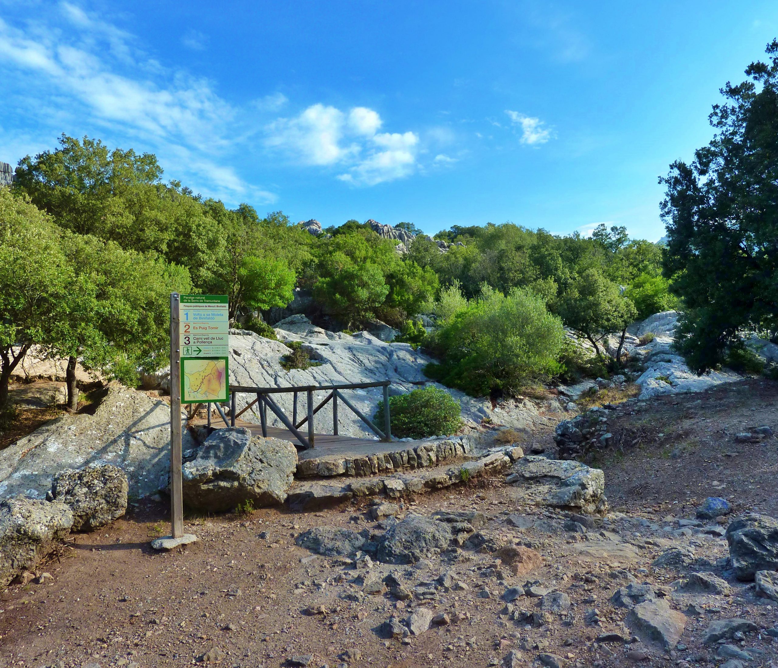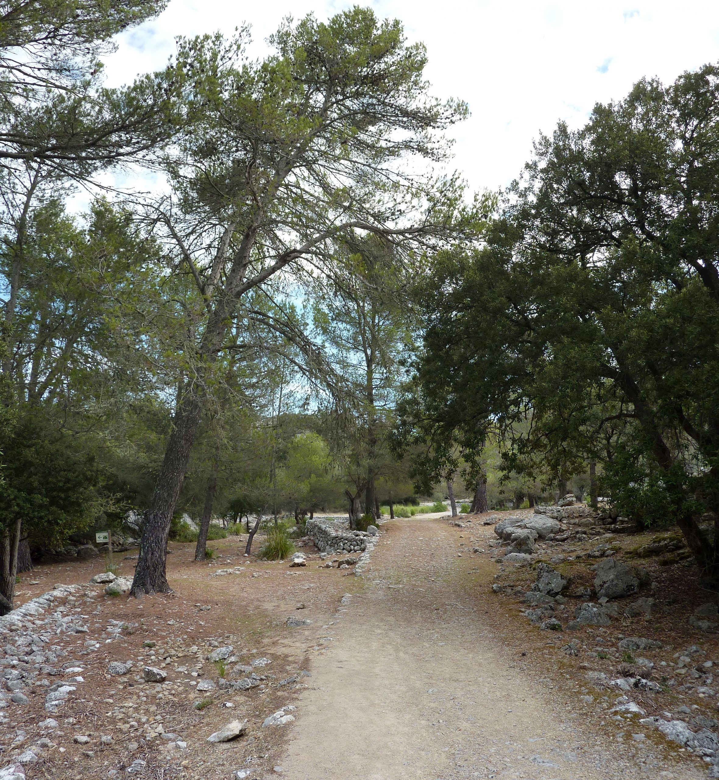 A la dreta s’alça el Galileu sobre la densa massa forestal del bosc de Son Massip. Arribats a un portell s’inicia una curta i exigent pujada fent ús d’un bell exemple de camí empedrat.