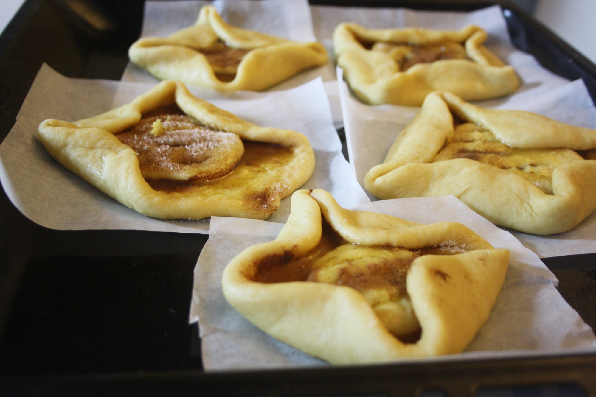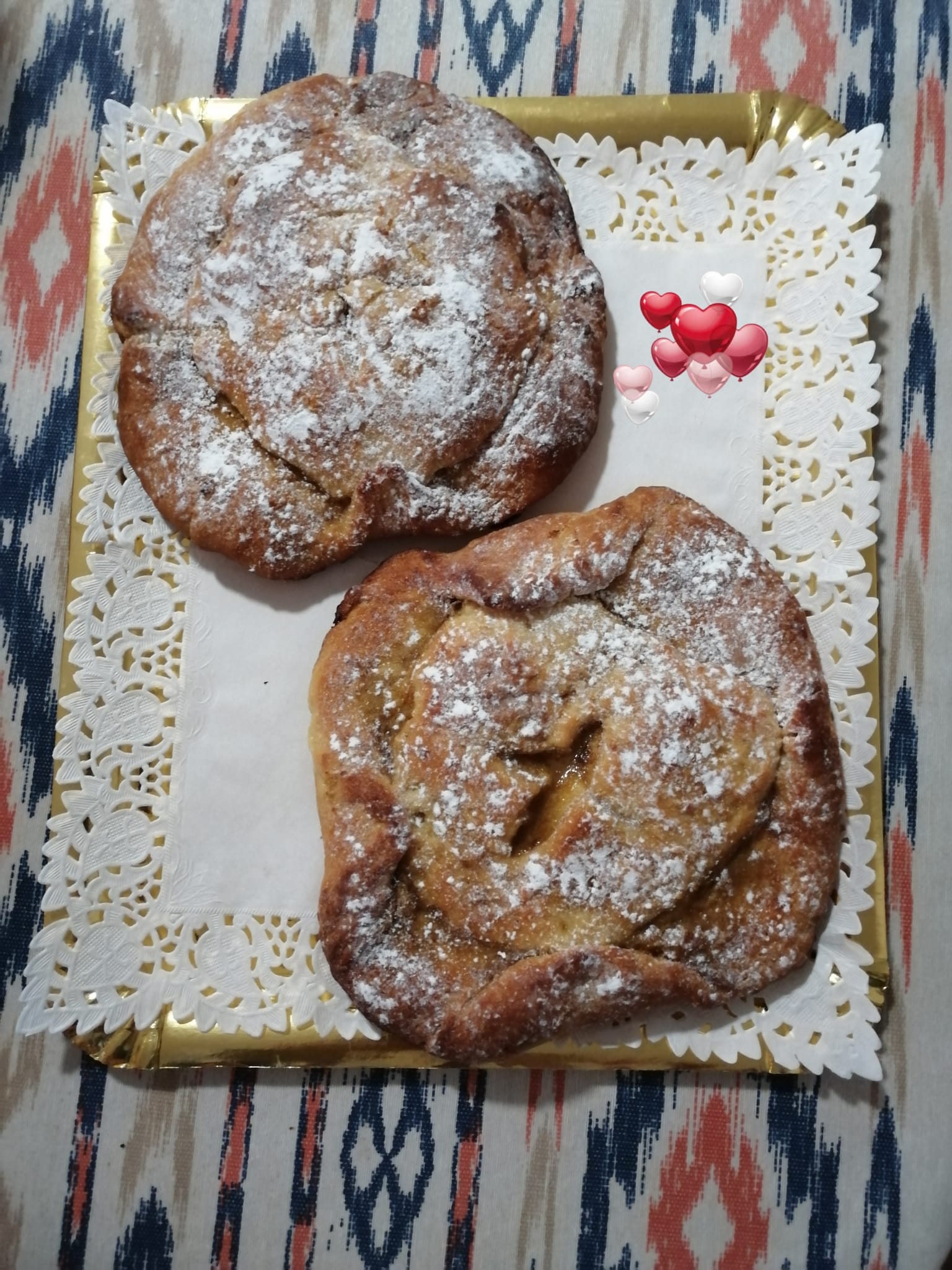 Així des del forn de Can Serra n’Antònia ens conta que la recepta és de “Na Rosina que tenia la botiga de davant el forn de Can Serra” i la pasta duu “1 kg de farina, 300 grams de saïm, 250 grams de sucre, 6 ous i llevat. Ratlladurade llimona i la canyella per damunt i sucre, per damunt. Sa ratlladura de llimona i la canyella per damunt heu de fer una base de pasta, canyella, sucre i ratlladura de llimona, una base més petiteta damunt i es dobleguen les puntetes cap a dedins i l’heu de tovar. I vigilar el forn, en uns vint minuts és cuit”