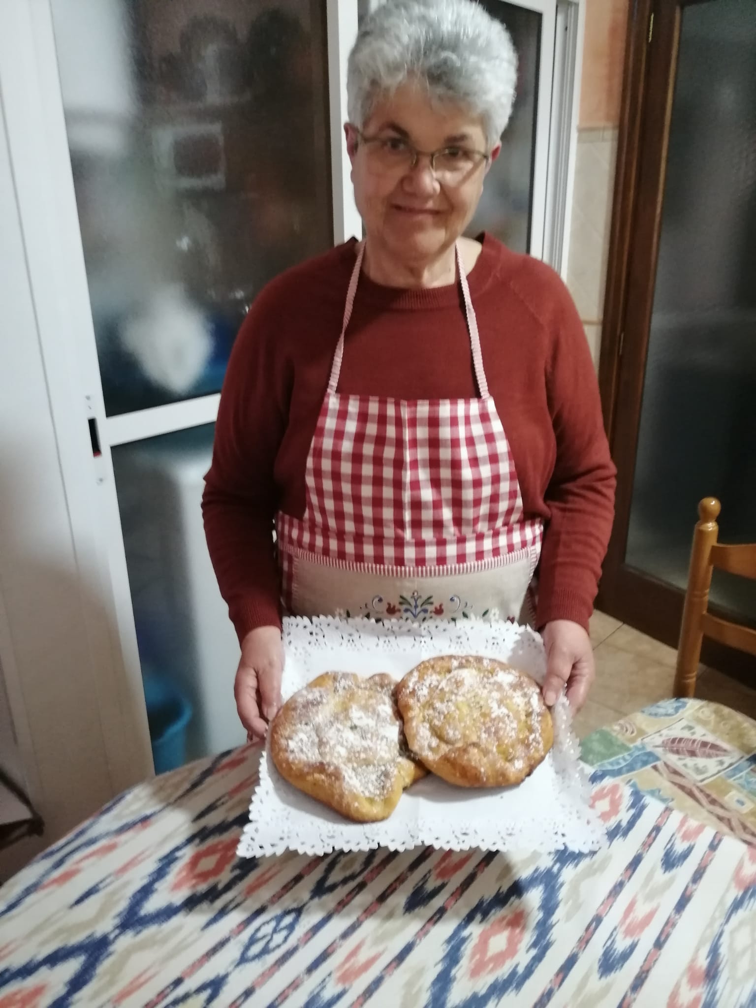 Na Margalida Serra Cánaves enguany ha recuperat la seva recepta que és molt antiga i que feia molts anys que no n’havia fet. Animada per la seva neta Elisa, i per dur com a postres a un dinar a Ciutat, es posaren a fer els crespells d’Alcúdia. La neta li demanà si eren mal de fer, i ella li respongué mal de fer no, però han de tovar. I així enguany, capvespre de Dimecres Sant es posaren a fer els crespells d’Alcúdia. Així, les receptes passen de generació en generació, experimentant a la cuina. El goig de la padrina és gran i la neta ha fruït d’aquest dolç, senzill però únic, que precisament per això és tan especial.